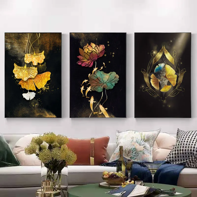 Золотые листья гинкго, Современная позолоченная декоративная картин...