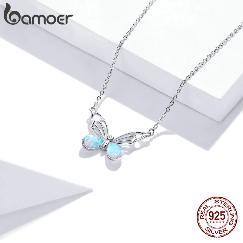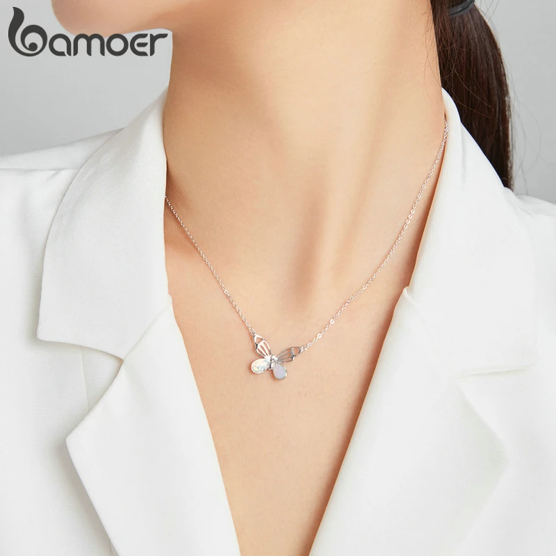 Женское Ожерелье bamoer из серебра 925 пробы с подлинными бабочками и животными, бижутерия, ювелирные изделия BSN216