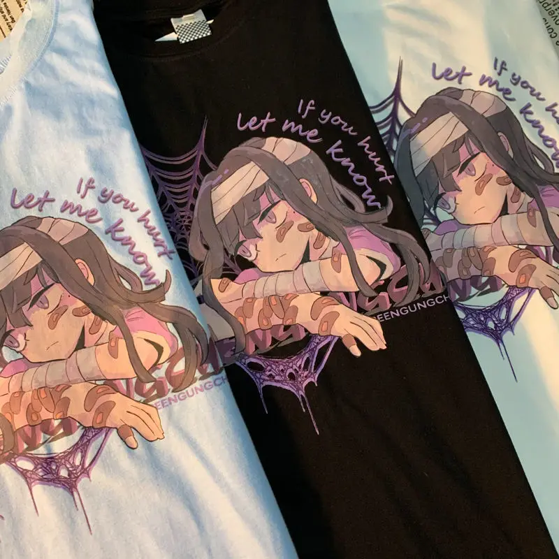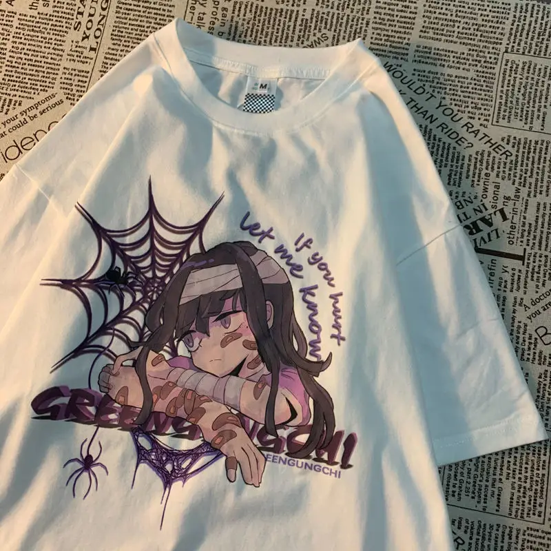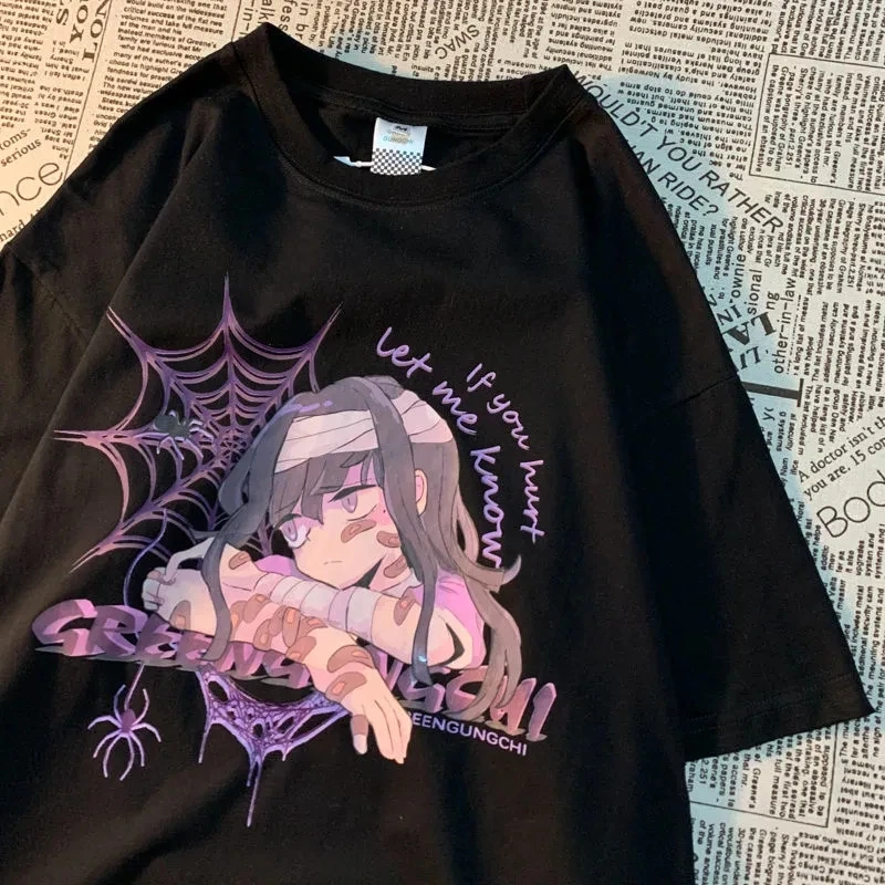 Летняя готическая одежда, футболка большого размера, мультяшная аниме футболка с принтом для девушек в стиле Харадзюку, футболка Kawai в стиле панк, темная, гранж, уличная одежда