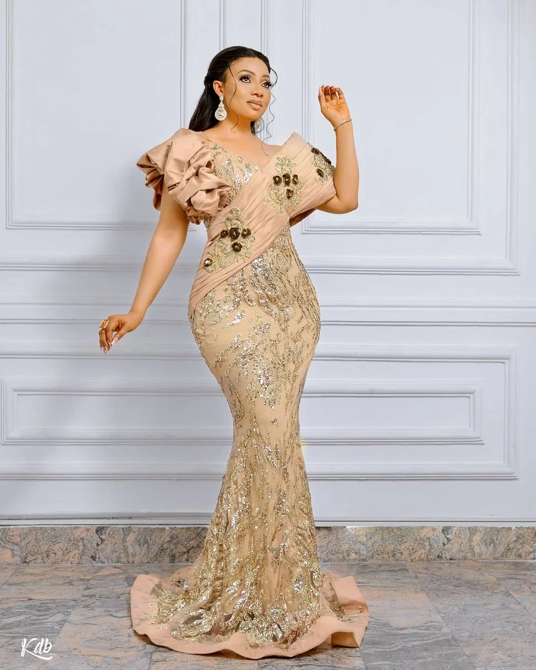 Очаровательный под традиционное платье Aso Ebi Свадебные платья из ...
