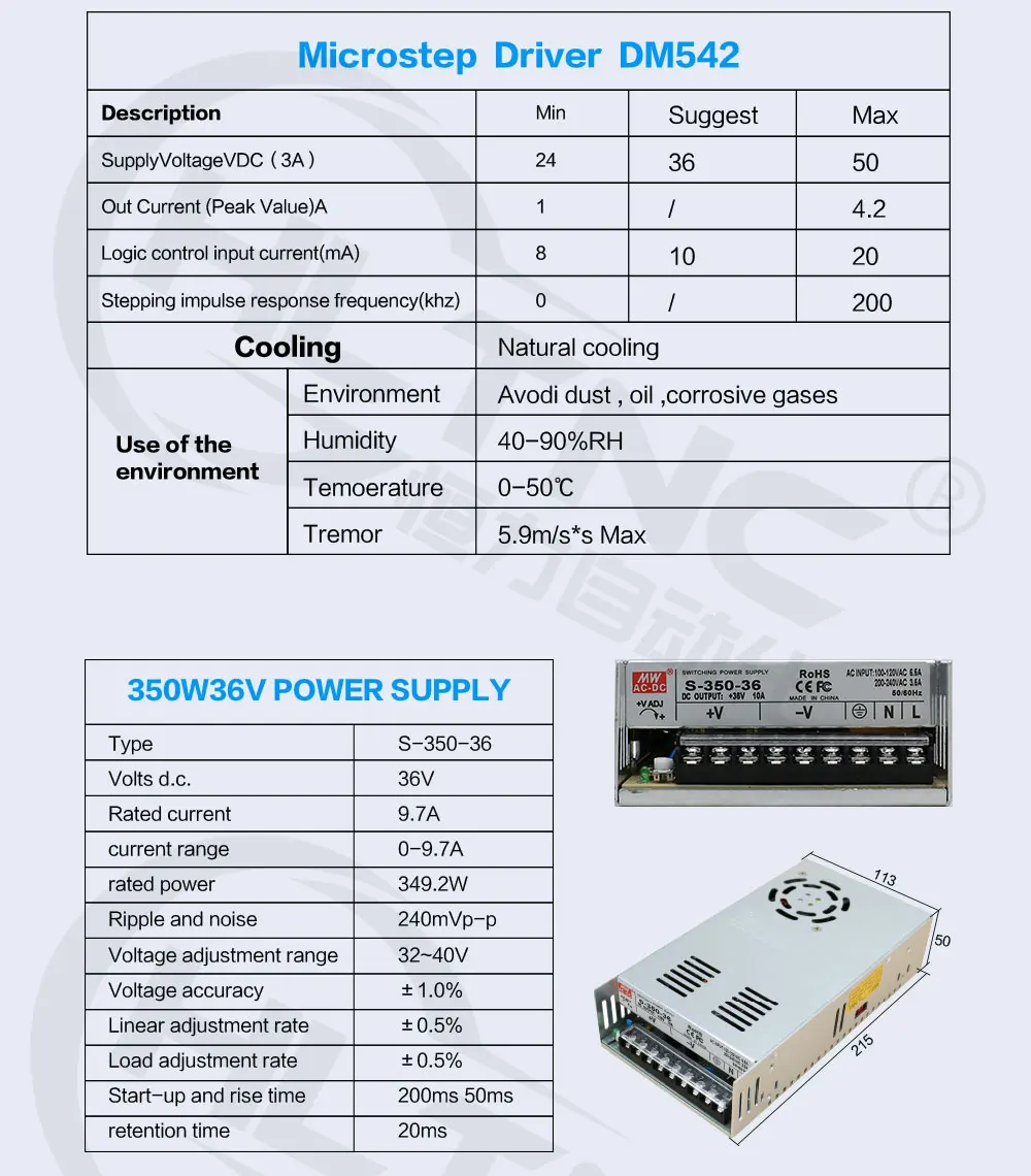 Драйвер шагового двигателя DM542, 3 шт., 3 Нм NEMA23, блок питания ...