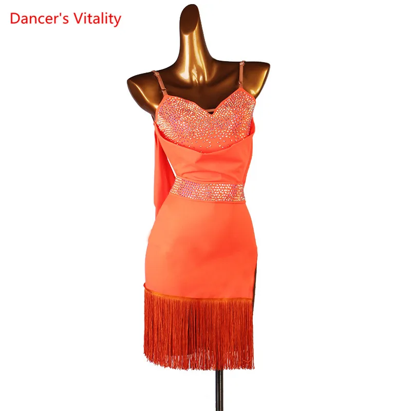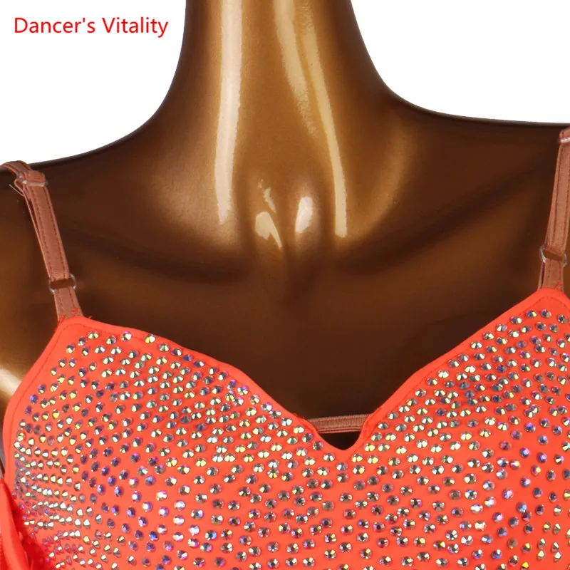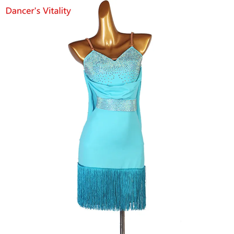 Платье для латиноамериканских танцев, длинная юбка на бретельках с бриллиантами, одежда для выступлений, высококачественная одежда на заказ для женщин, детей и взрослых, одежда для соревнований