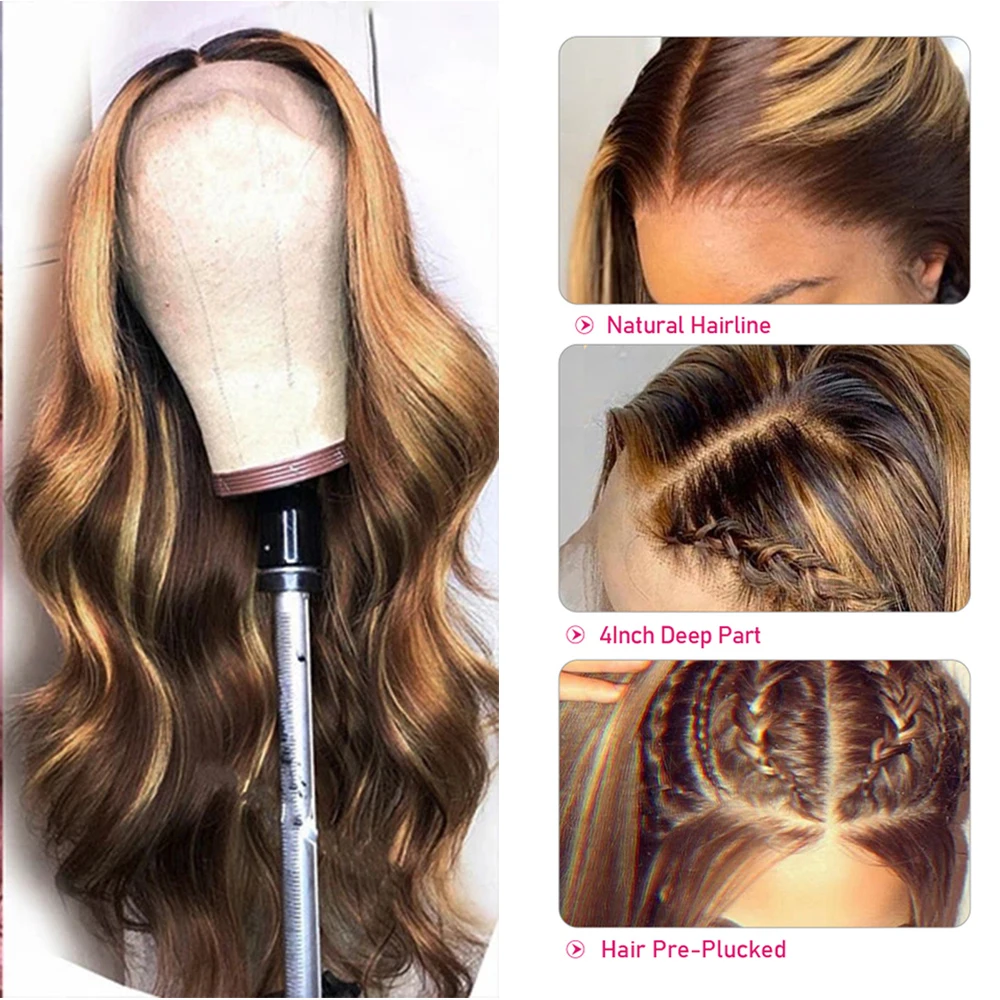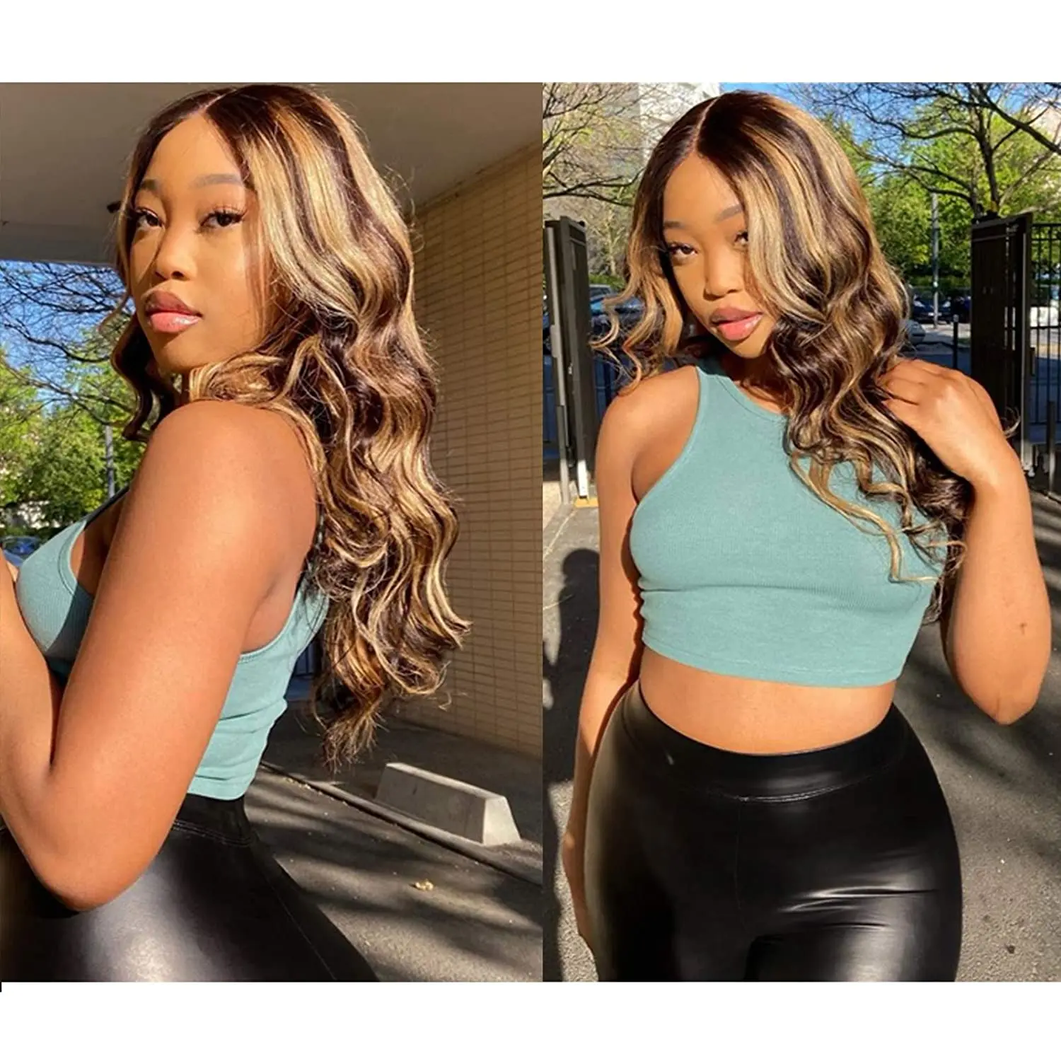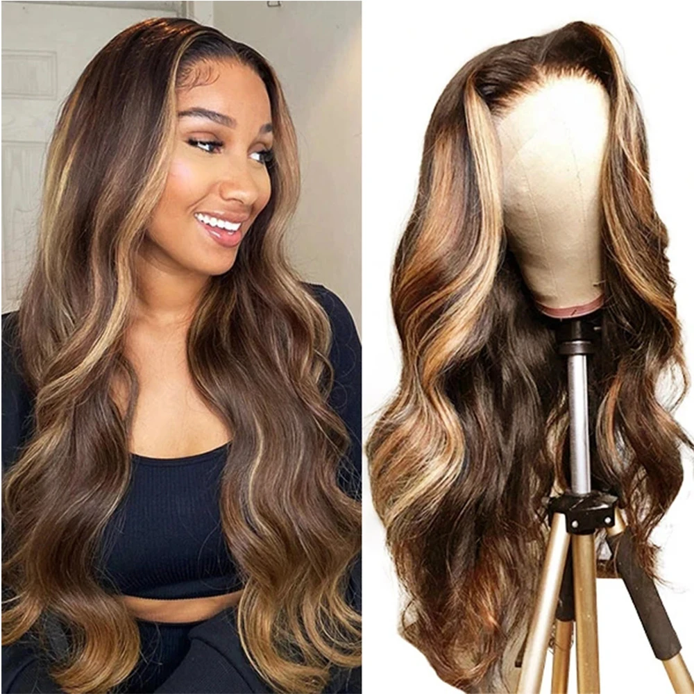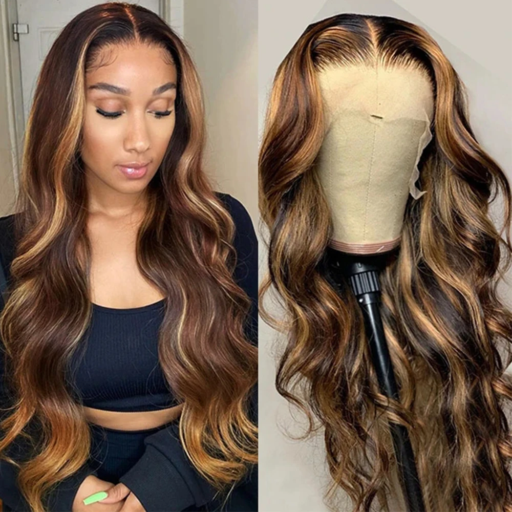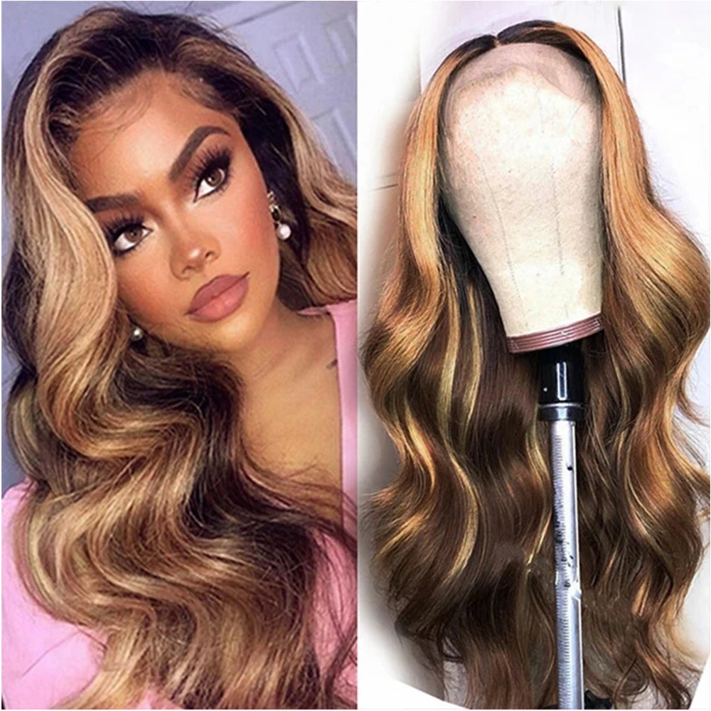 Выделите объемная волна Синтетические волосы на кружеве al парик с эффектом деграде (переход от темного к Синтетические волосы на кружеве парики из натуральных волос с Африканской структурой, 13x4 Синтетические волосы на кружеве al парик из человеческих волос для Для женщин, эффектом деграде (переход от темного к объемная волна парики для афроамериканцев, коричневый блонд Синтетические волосы на кружеве парики из натуральных волос