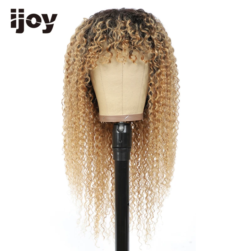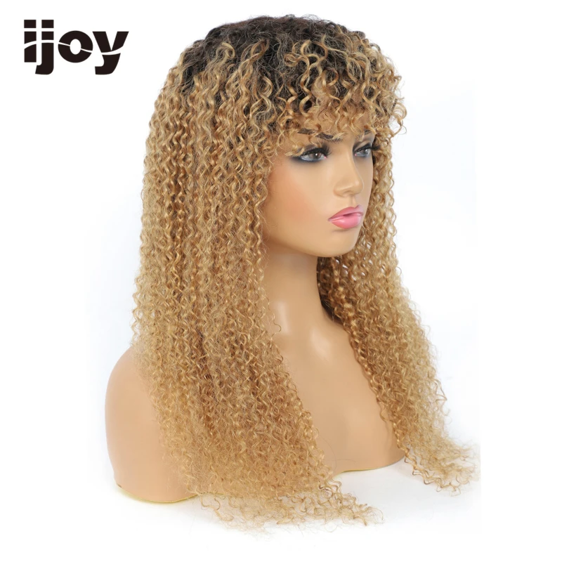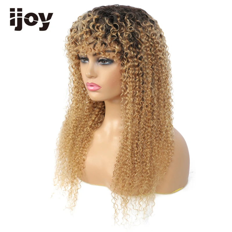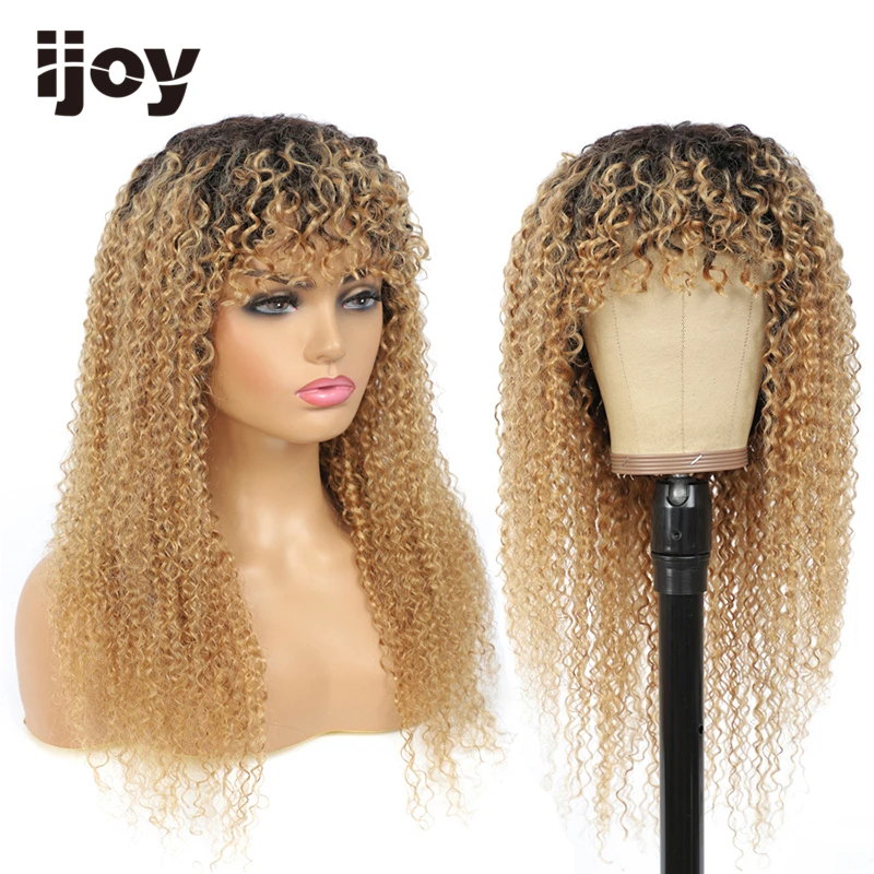 Парик из человеческих волос с челкой, кудрявые, кудрявые волосы, цветные, Омбре, медовые, светлые бразильские волосы, парики для женщин, не Реми IJOY
