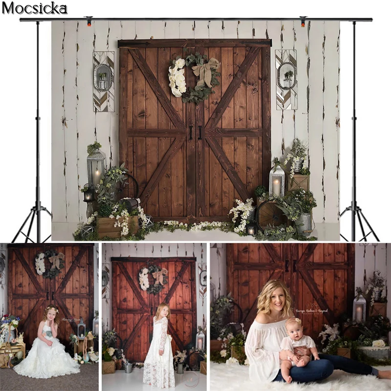 Фон Весна свежие цветы Винтаж темно-коричневая деревянная дверь стена ребенок портрет фотографии фоны фото студия Декор реквизит