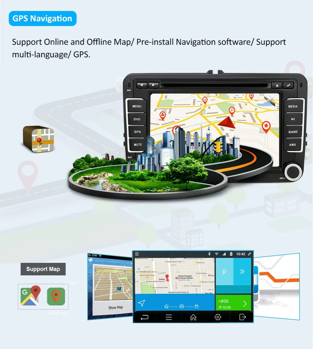 15. Онлайн-навигация: Поддержка gps-навигации, встроенный gps-приемник, Совместимость с Waze / Navfree / Google Map и т. д. драйвер может избежать пробки заранее.