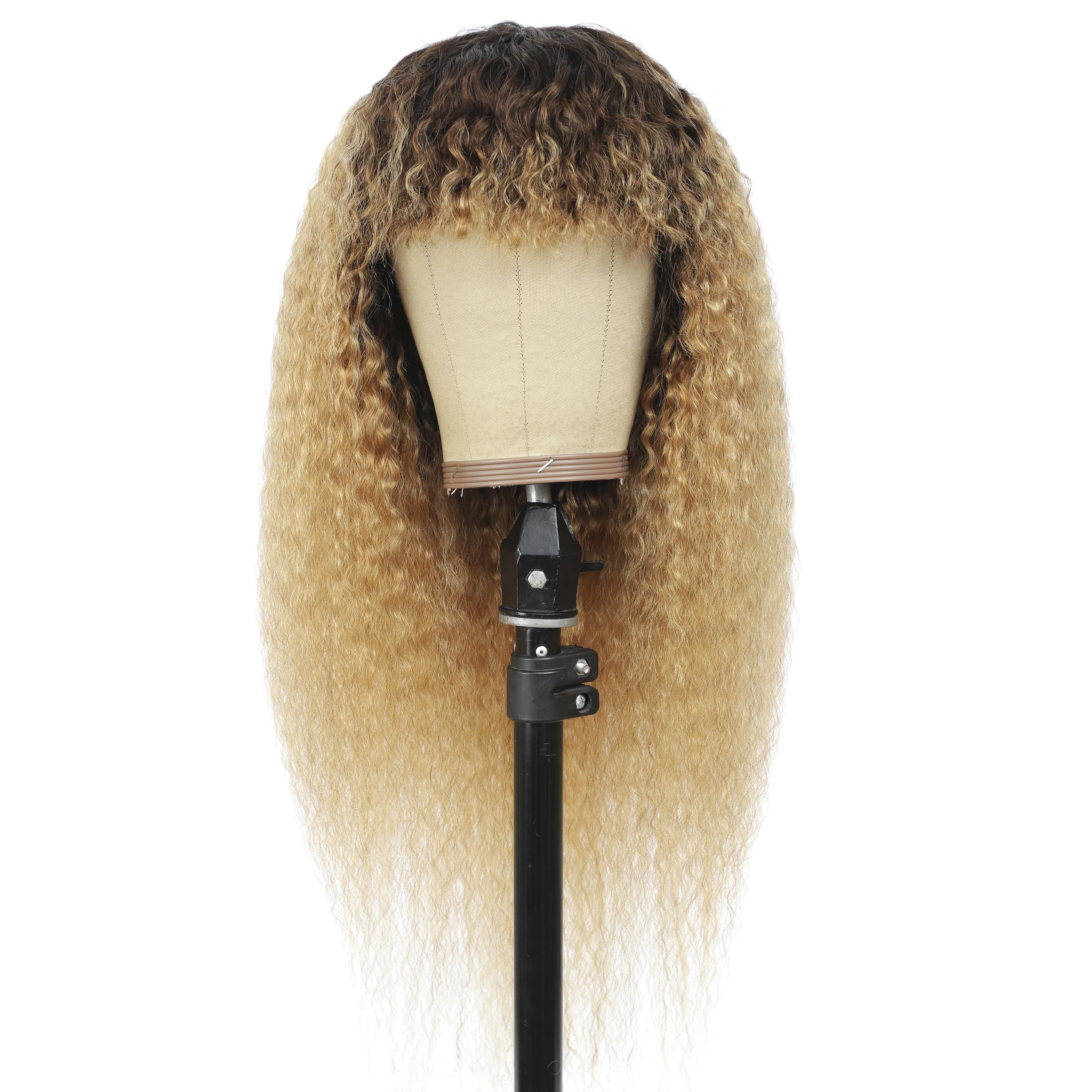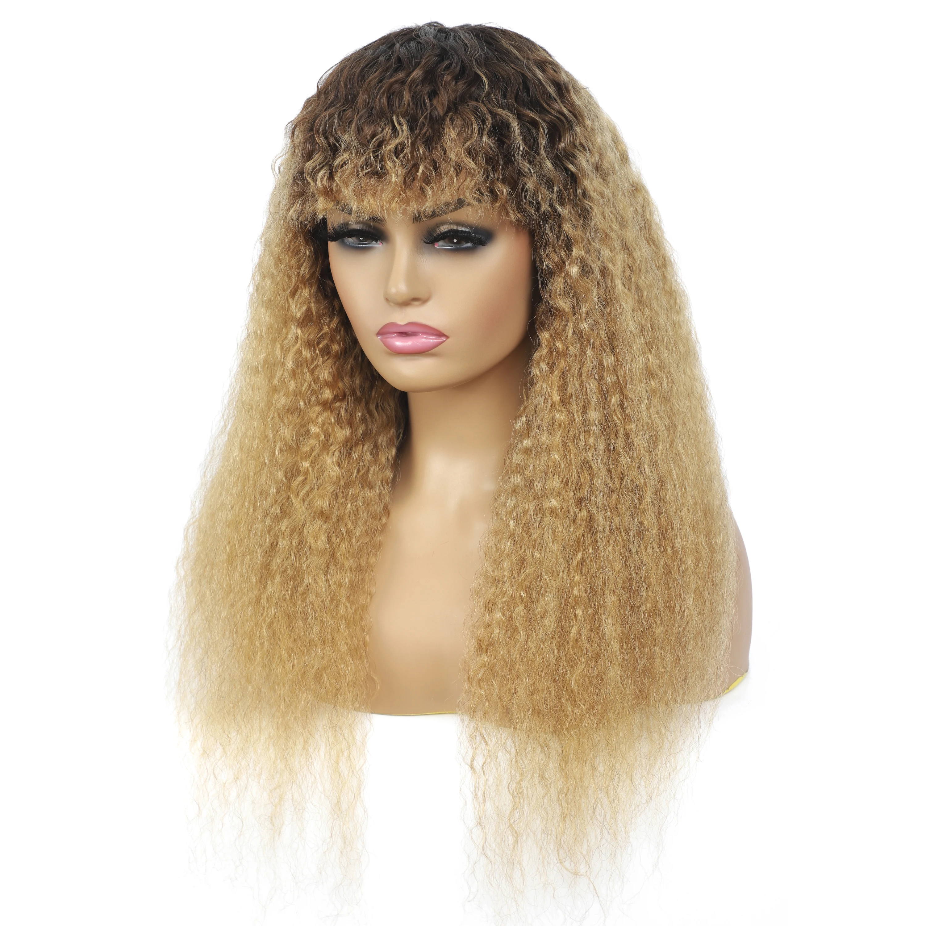 Парик из человеческих волос с челкой, светлые курчавые прямые парики с эффектом омбре, бразильские волосы, парики с полной машинкой для черных женщин, не Реми, IJOY