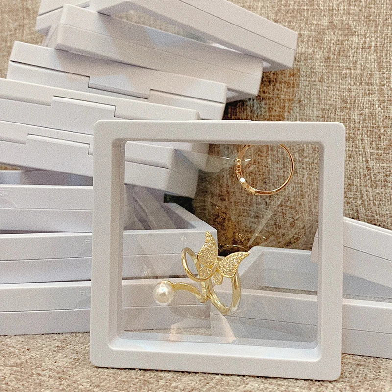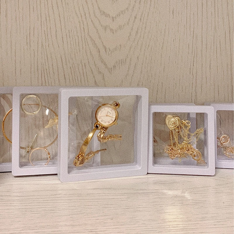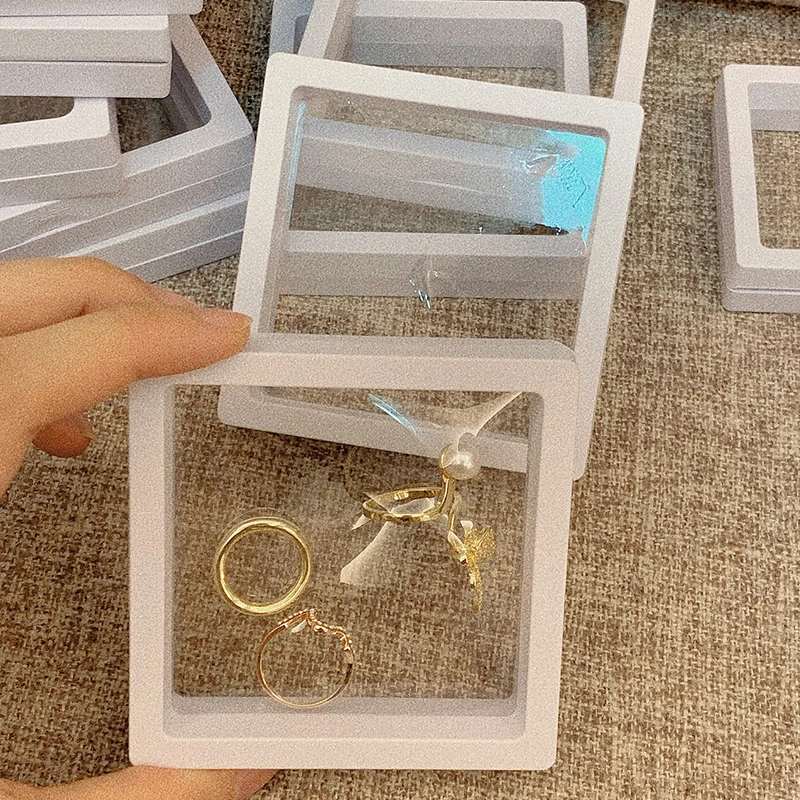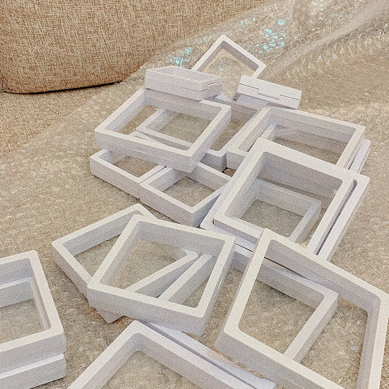 Прозрачная шкатулка для ювелирных украшений, кейс для демонстрации колец, ожерелий, браслетов, коллекция с плавающей квадратной 3d-рамкой, 10 шт.лот
