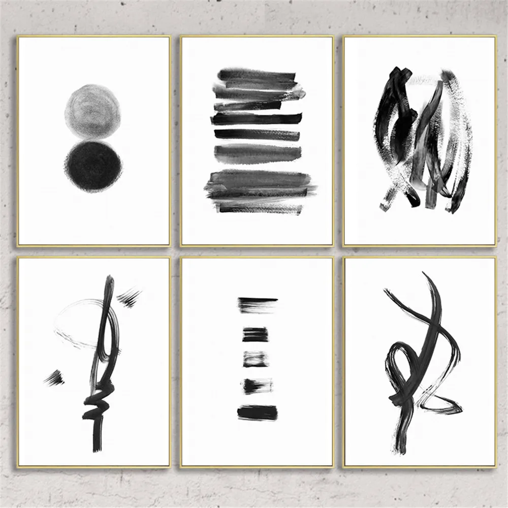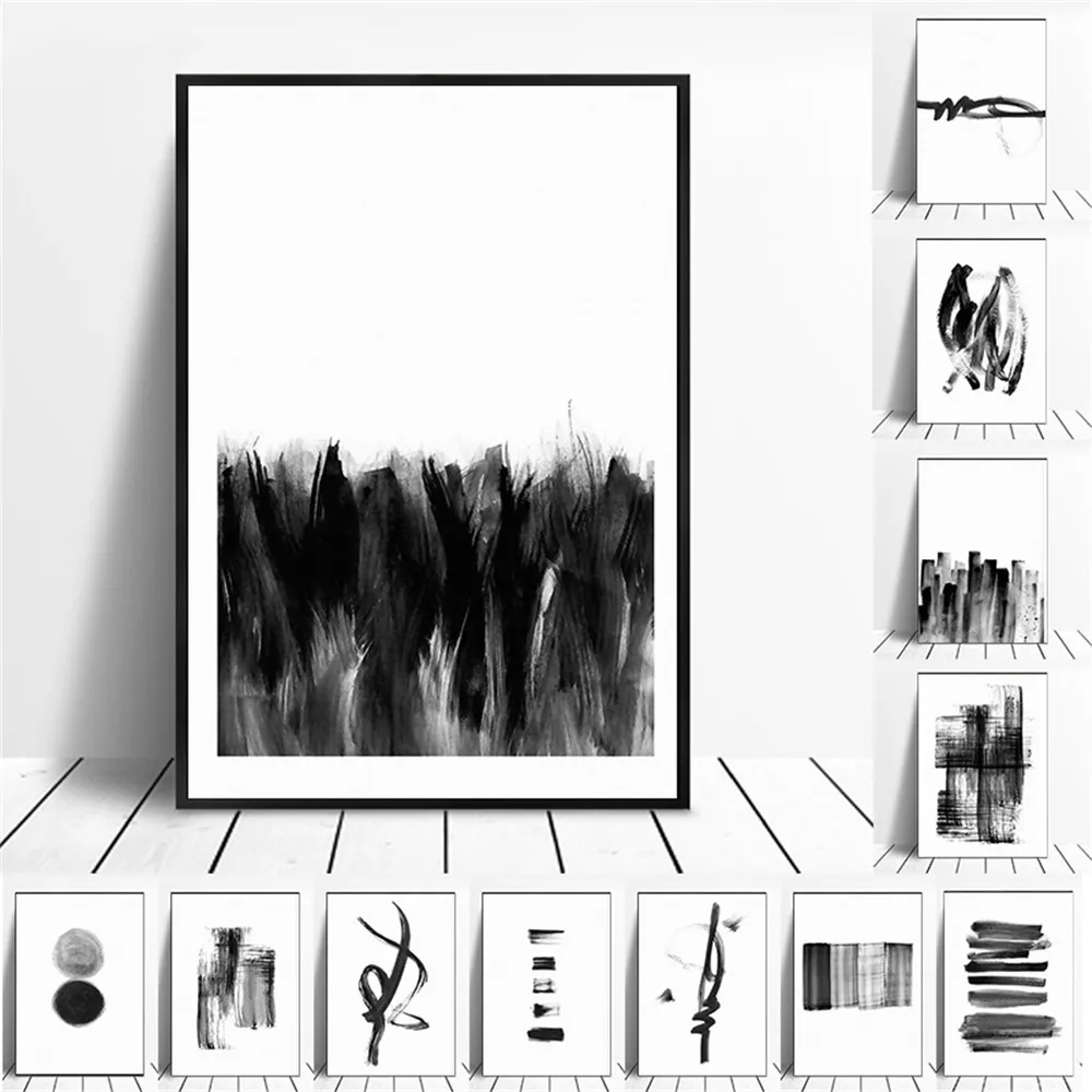 Абстрактное настенное художественное черно-белое художественное полотно с кисточками, Постер в стиле бохо, декоративные картины для украшения гостиной