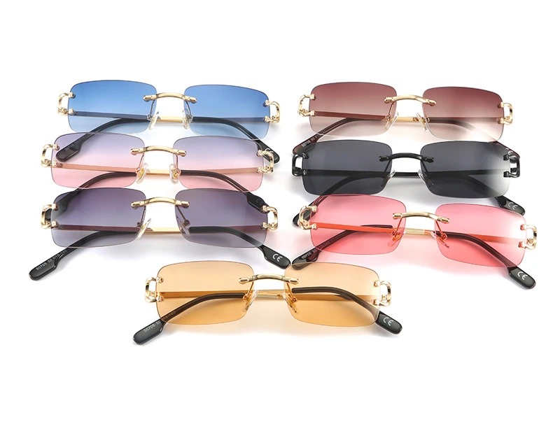 Солнцезащитные очки Kachawoo без оправы для мужчин и женщин, прямоугольные маленькие модные солнечные очки с металлической оправой uv400, синие, розовые, золотистые, подарок на день рождения