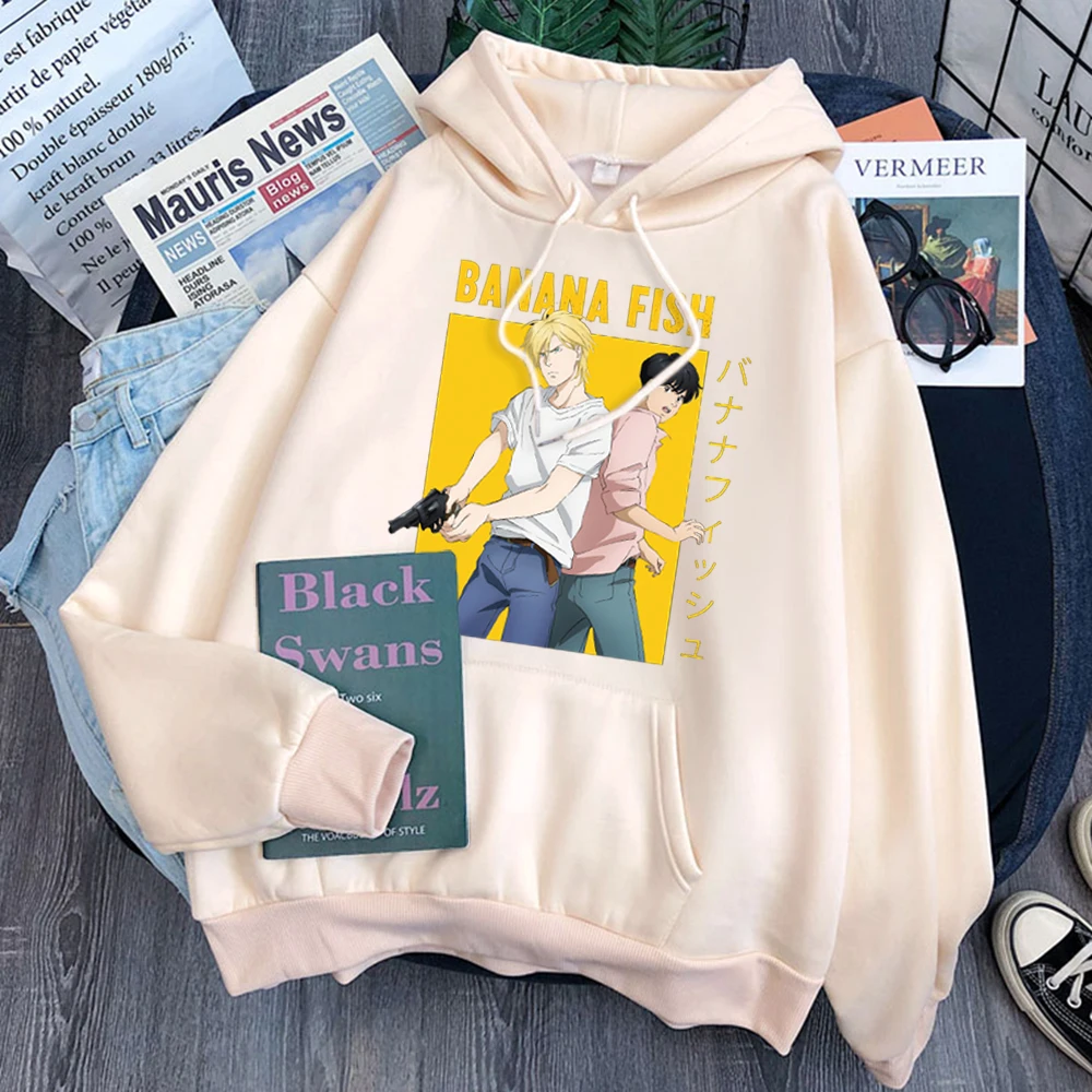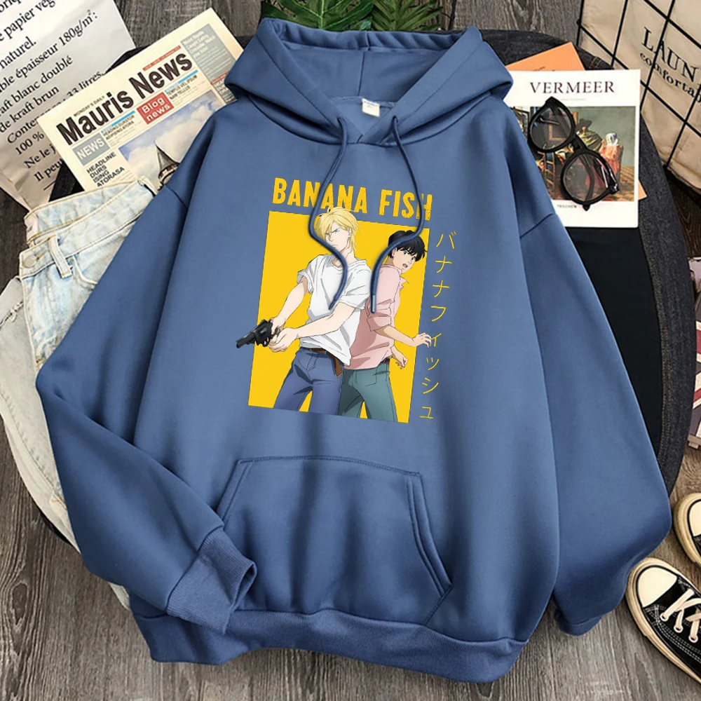 Мужская Флисовая Толстовка с принтом в стиле аниме, теплая толстовка с бананами и рыбками, уличная одежда высокого качества, свободная одежда, худи, 2021