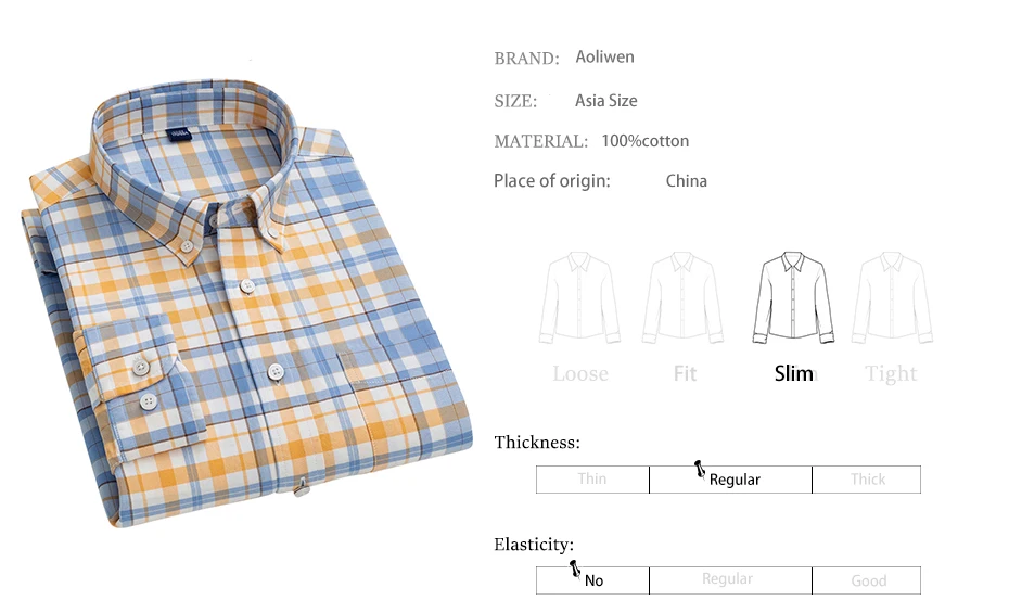 Мужская Однотонная рубашка AOLIWEN, повседневная приталенная рубашка из 100% хлопка, в клетку, с длинным рукавом, 2021, весна-осень, антибактериальные, удобные