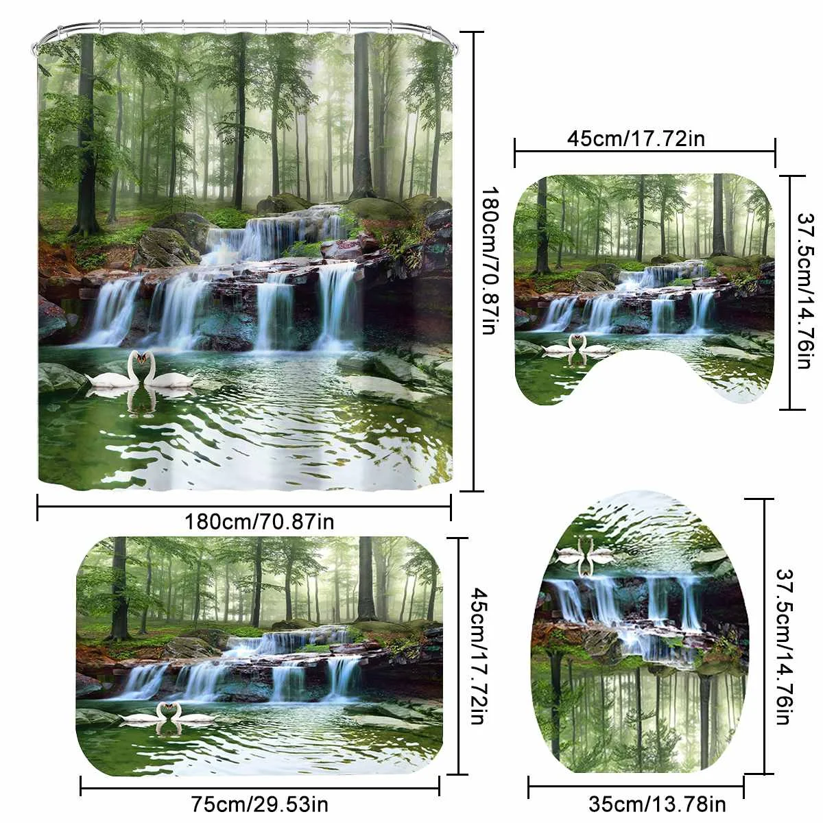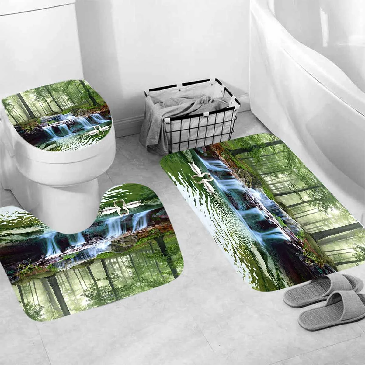 431 шт. 3D водопада пейзажей Водонепроницаемый душ Шторы сиденье для унитаза крышка коврик для ванной на нескользящей подошве ковры Ванная комната комплект