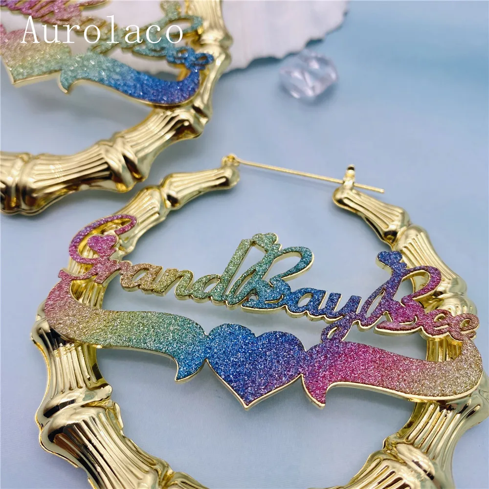 DOREMI Цвет Фул Пользовательские Бамбук Имя Серьги блеск Цвет стике...