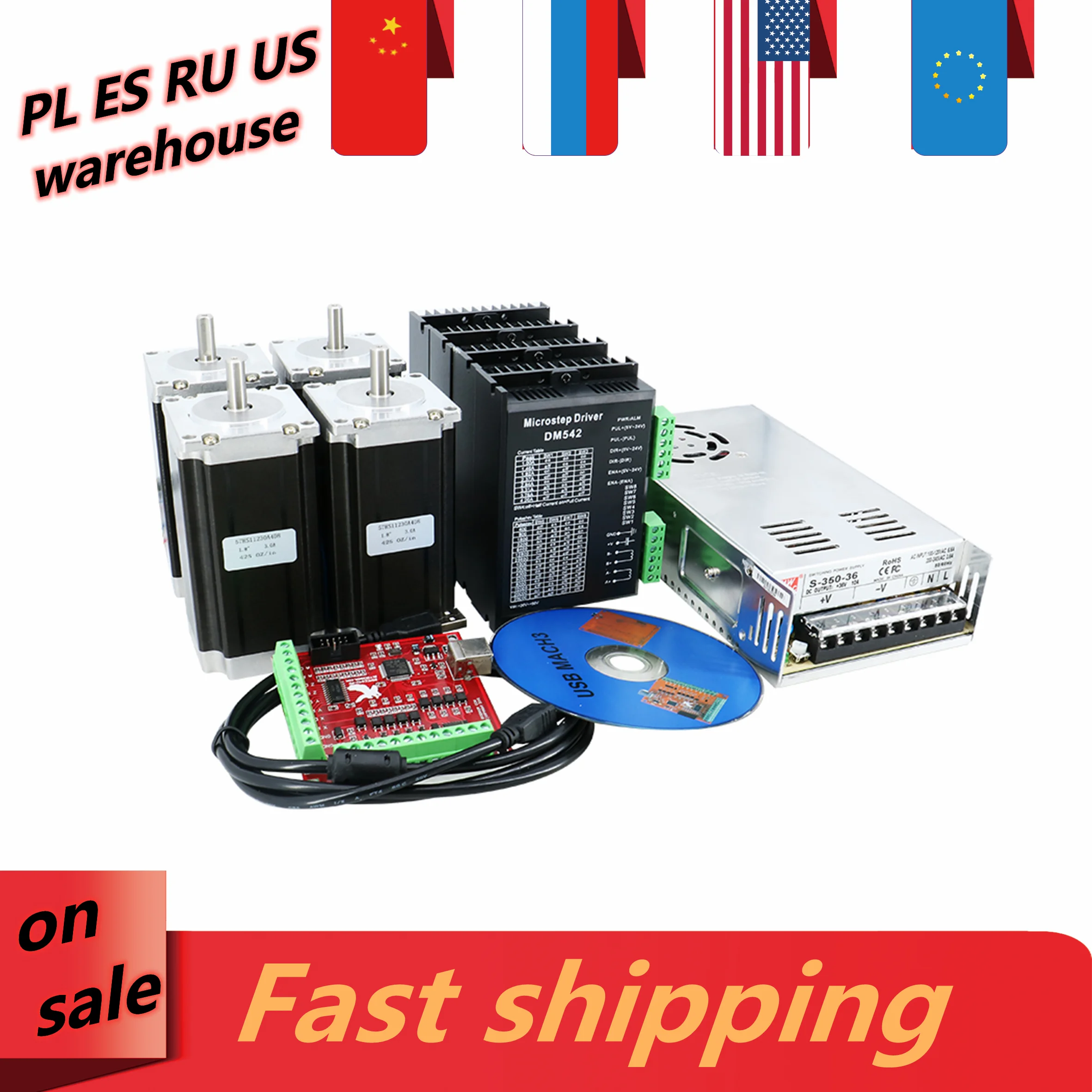 4-осевой 3-нм шаговый двигатель включает 4 двигателя 425oz-in, 4 TB6600DM542, 1 блок питания, 1 контроллер mach3