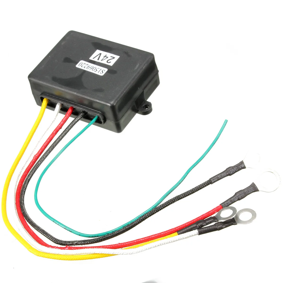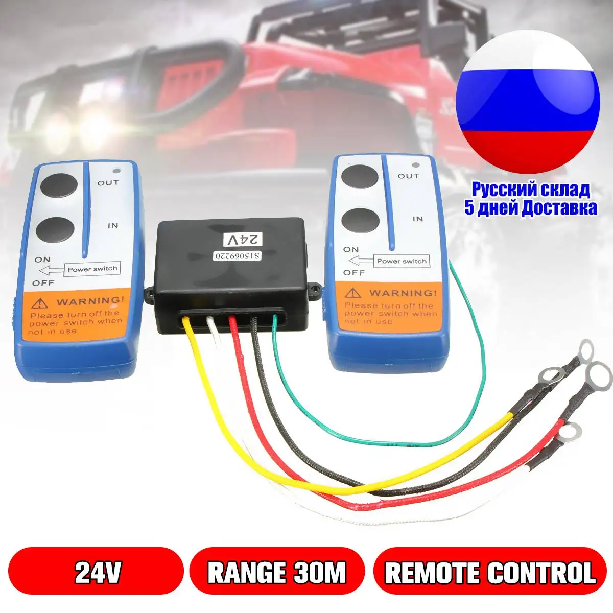 Особенности:-100% новинка, высокое качество.-Уникальный дизайн.-Дистанционный диапазон до 98 футов.-Всепогодный передатчик, приемник.-Передатчик оснащен аккумулятором с длительным сроком службы.-С функцией включения питания и отключения питания.-Для работы с большинством марок и моделей лебедок.-Провода прямо в соленоидную коробку.Спецификация:Цвет: синийНапряжение: 24 ВПодтип: беспроводной пульт дистанционного управления лебедкойТип: лебедки, краныДистанционный диапазон: 98 футов/30 мКоличество удаленных рук: 2 шт.Общее количество: 3 шт.Размер: как показано на фотографииПроводное Соединение:Желтый провод: INБелый провод: OUTКрасный провод: положительный +Черный провод: минус-Зеленый провод: антеннаПосылка2 x пульт дистанционного управления1 х контроллер