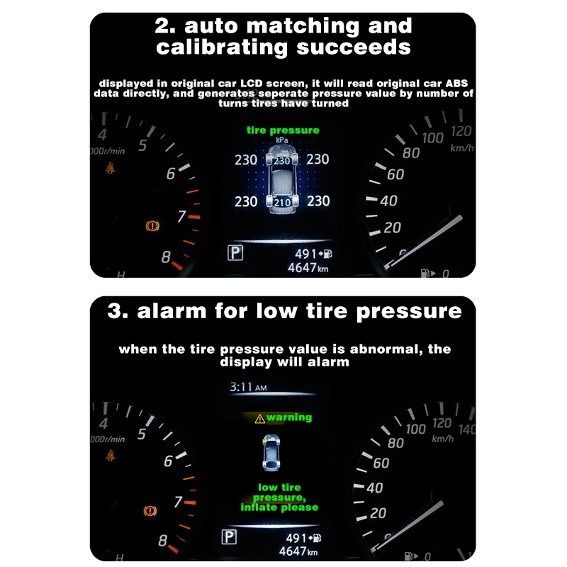 3. В режиме реального времени и умный контроль давления в шинах, это будет оповещать точно и своевременно, если есть какие-либо аномальные давления в шинах