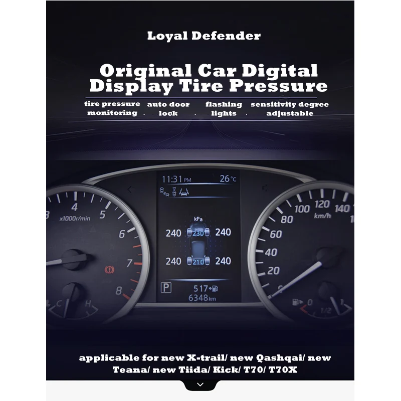 5. Оригинальный Автомобильный цифровой экран с удельным значением 4 шин, не занимает другого места, мониторинг более точный и точный, выглядит очень красиво и высокого класса
