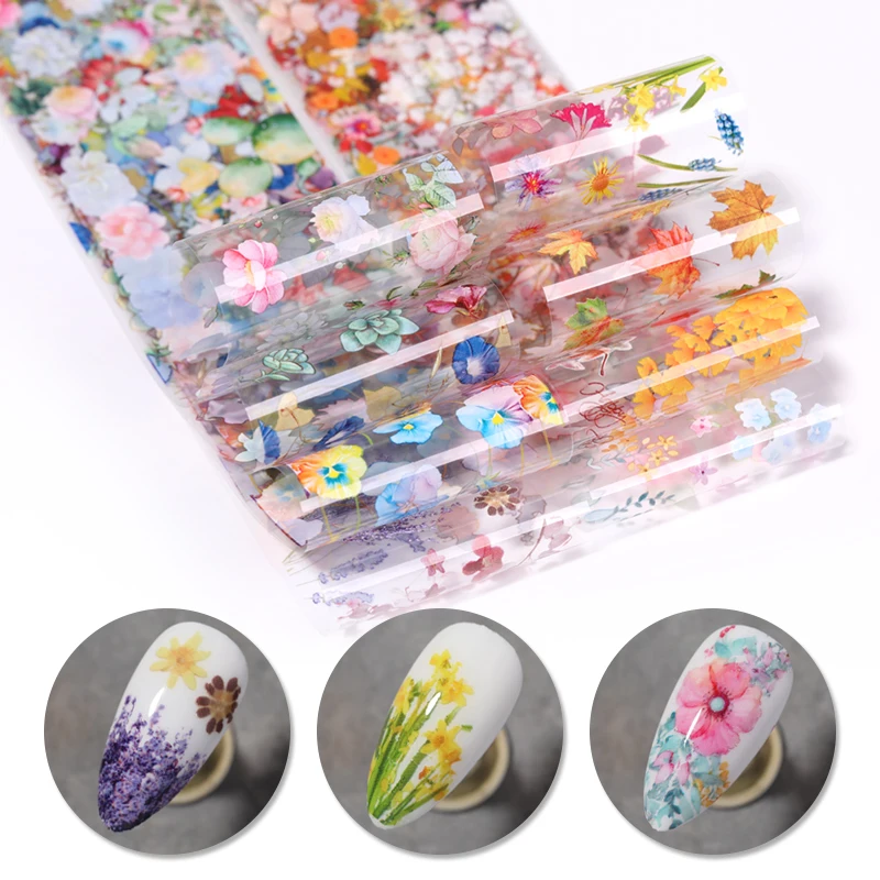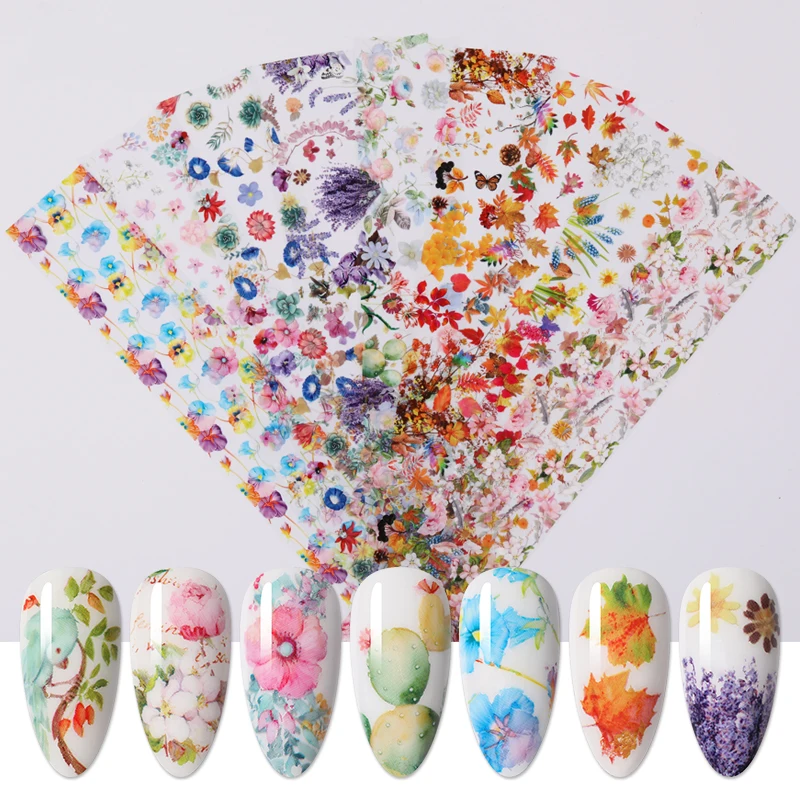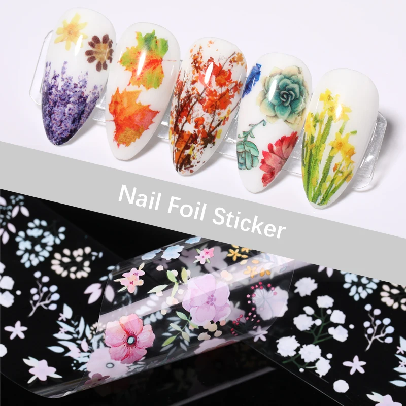 1 коробка сезон: весна-лето Simeple наклейки из фольги для ногтей и изображениями красочного цветка Листья наклейки переводятся при помощи слайдер художественное оформление ногтей маникюр