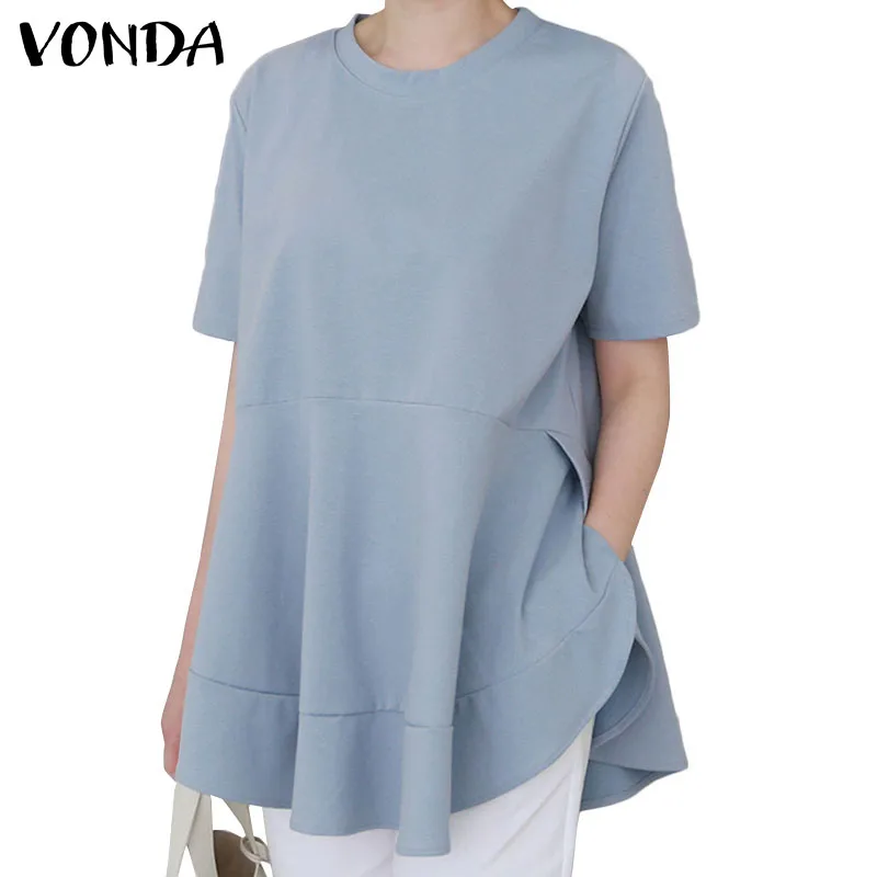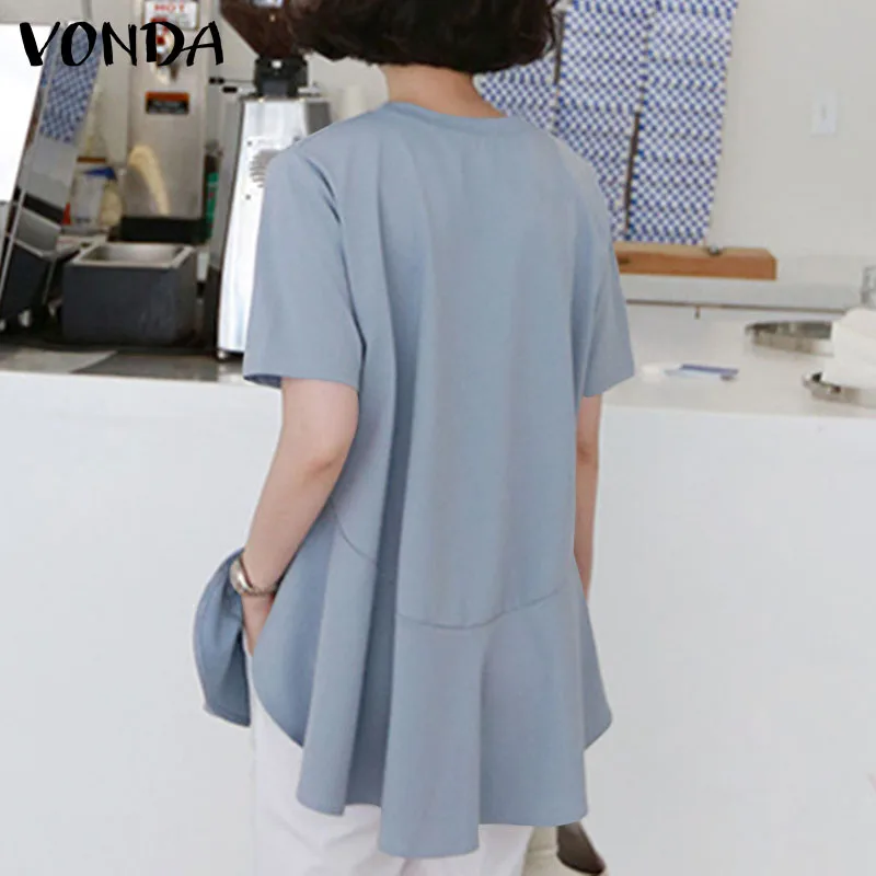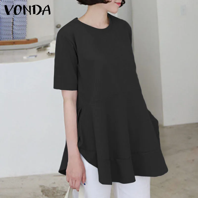 Женские однотонные топы, асимметричные топы, праздничные Короткие рукава с круглым вырезом, праздничные Топы 2021 VONDA, Женская Повседневная Блузка S-