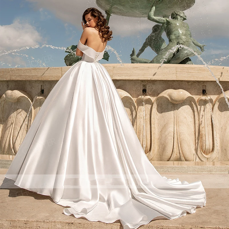 Атласное Бальное Платье soworthy, простое кружевное свадебное плать...