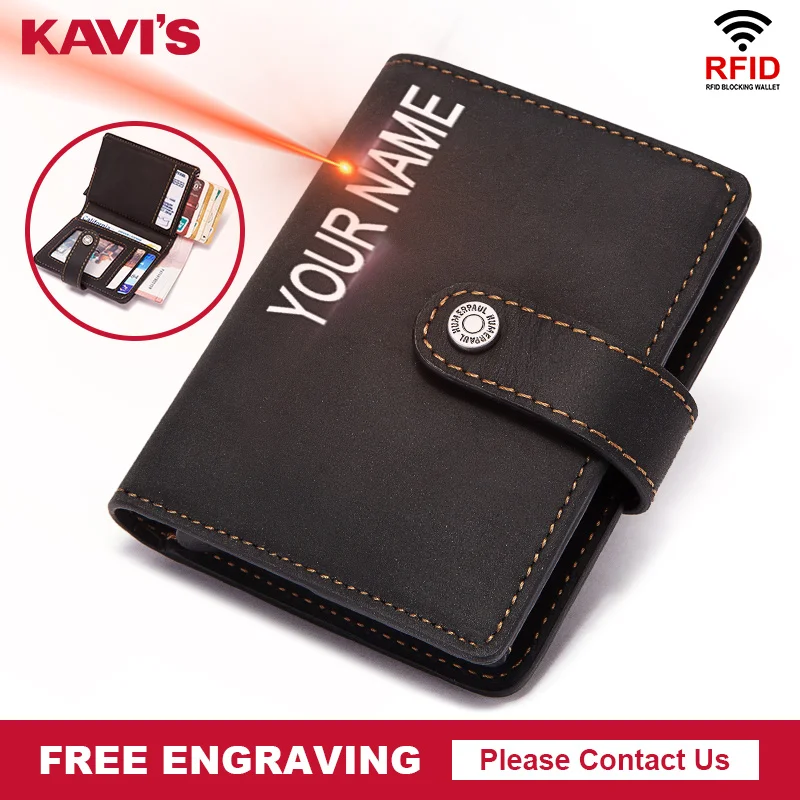 Мужские кошельки KAVIS из воловьей кожи, Короткие Бумажники на молнии с именем карточка с гравировкой, портмоне высокого качества для мужчин на заказ