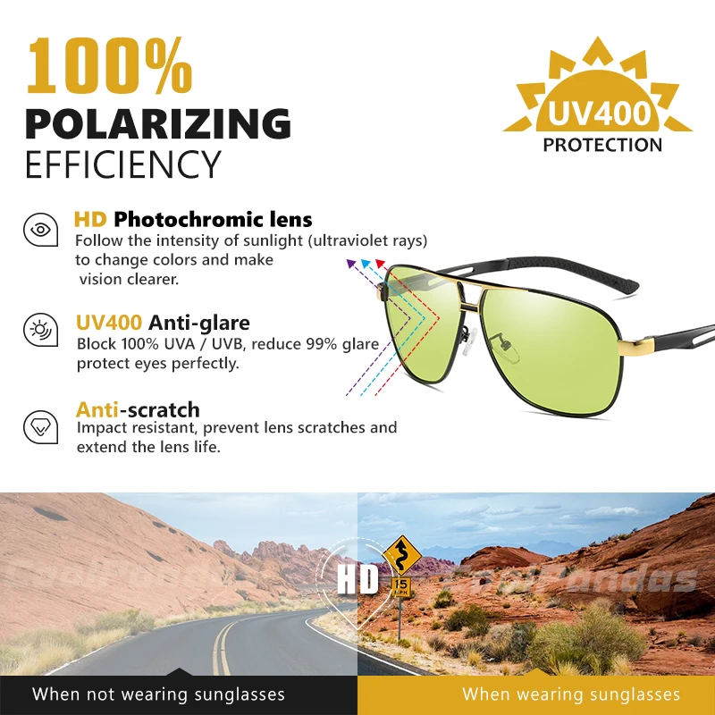 Мужские фотохромные солнцезащитные очки для вождения Anti-UV400, ви...