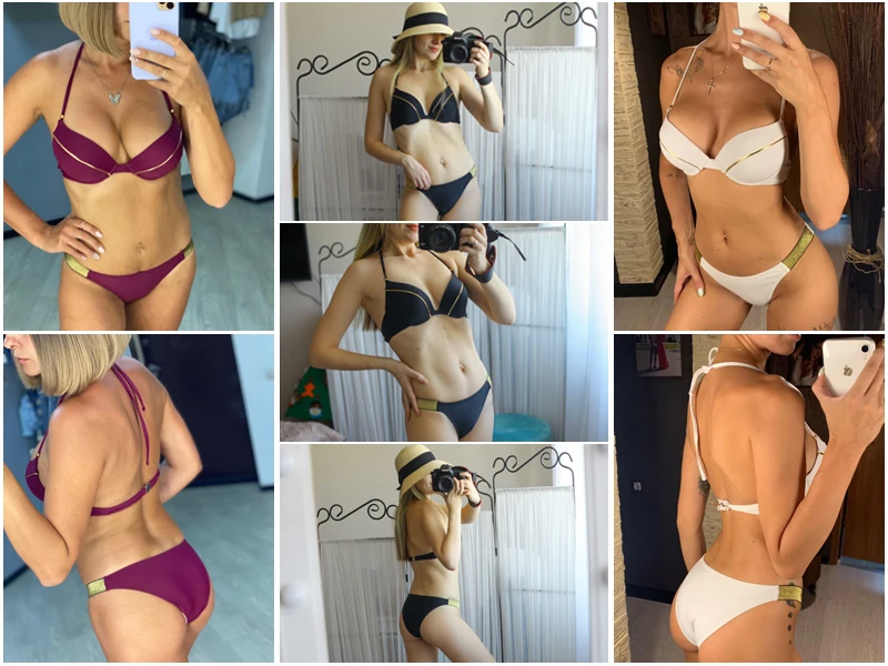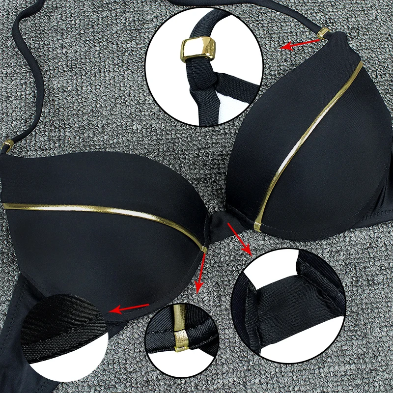Сексуальное Лоскутное бикини пуш-ап с окантовкой, Женский комплект ...