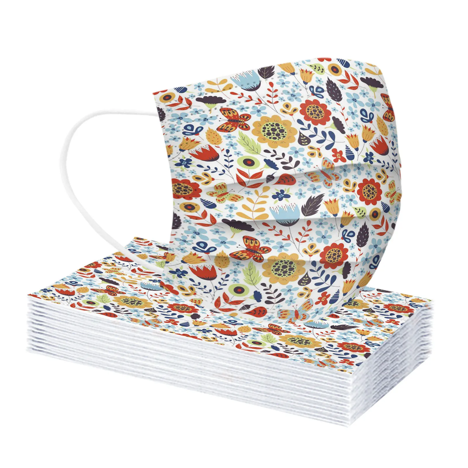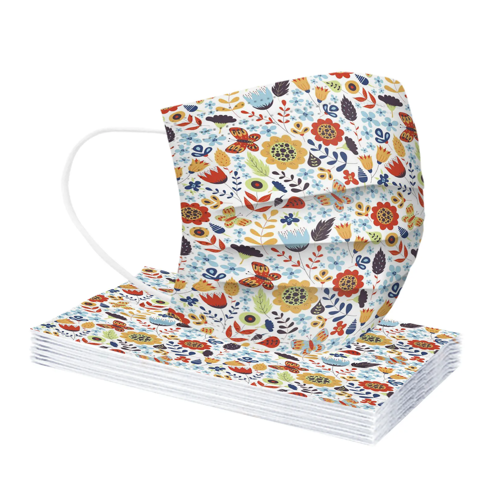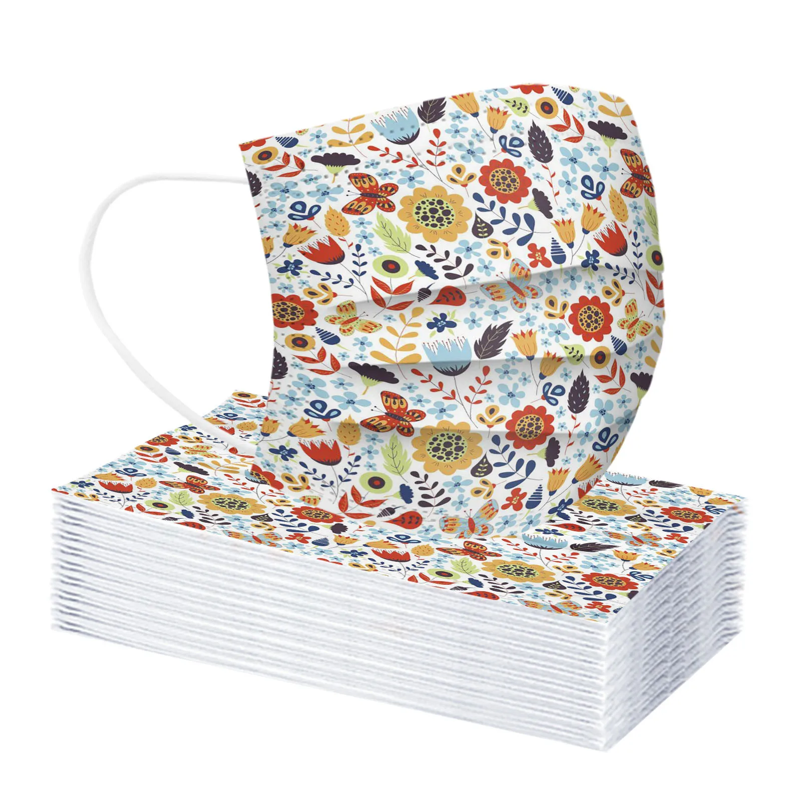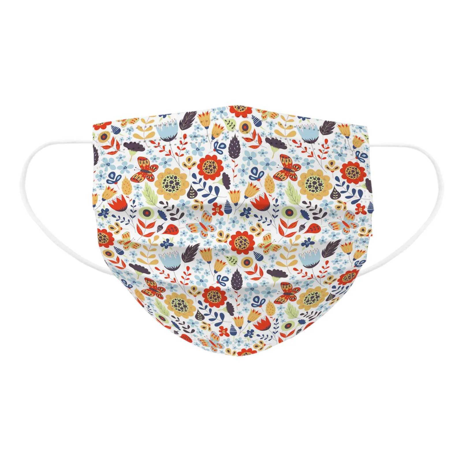 Маска одноразовая дышащая 3-слойная с рисунком цветов, 10203040 шт.