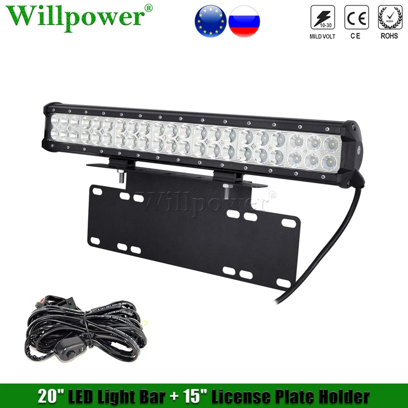 Внедорожника SUV 20 "126 Вт Светодиодный светильник для светодиодных ламп + держатель номерного знака 4x4 грузовик автомобильный светильник бар светодиодный рабочий светильник Бар Кронштейн Комплект проводов