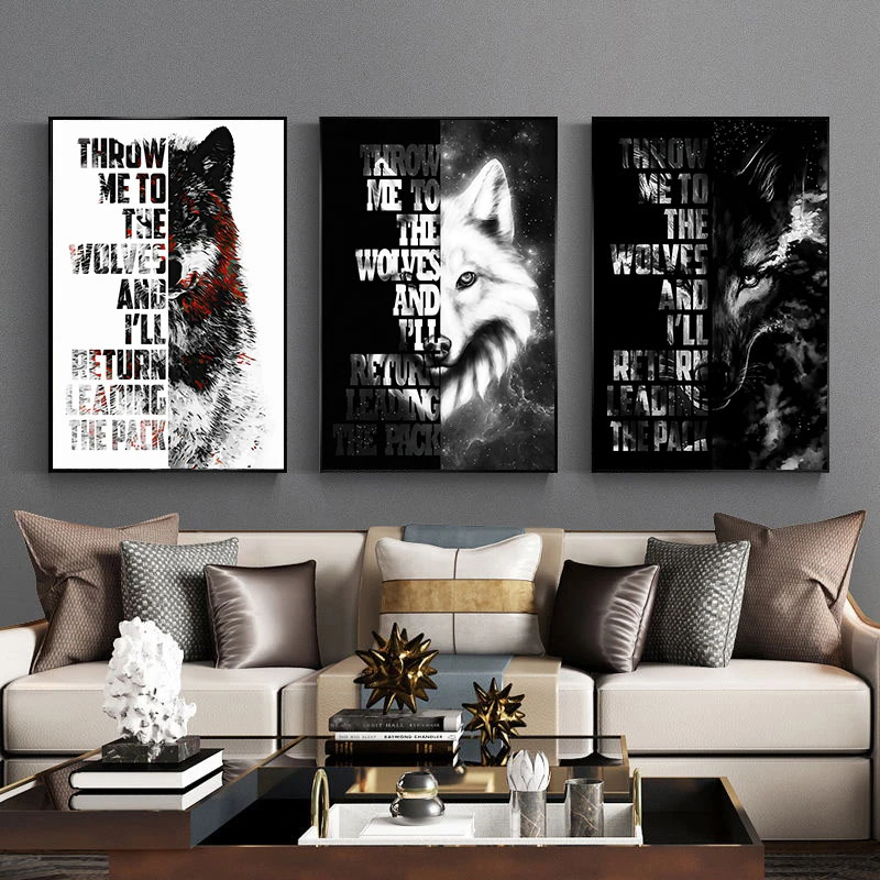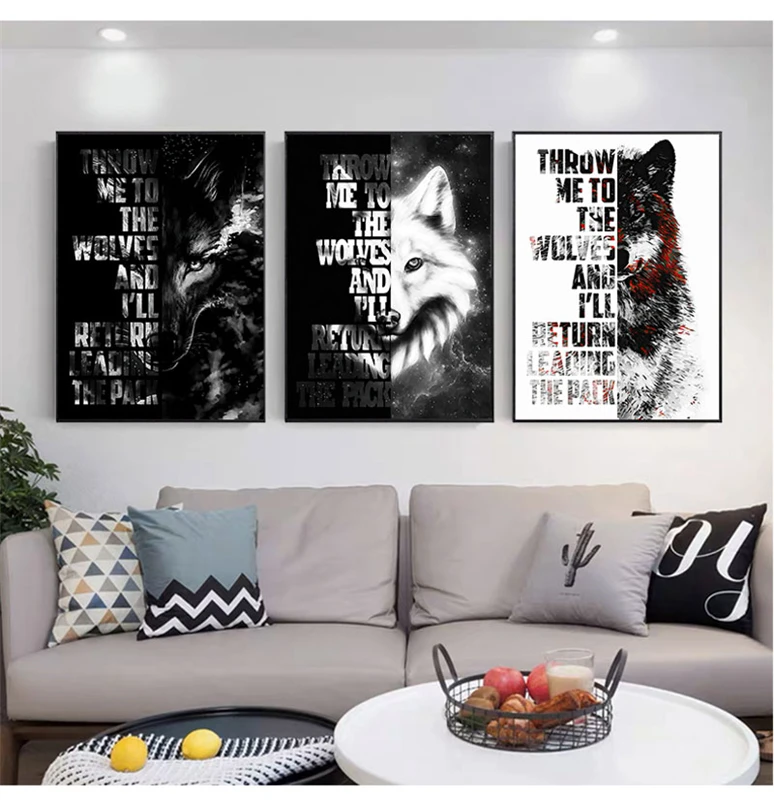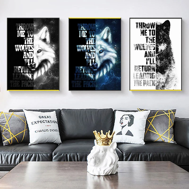 Nordic Волчья Голова Wall Art фотографии дикая Животные Плакаты чер...