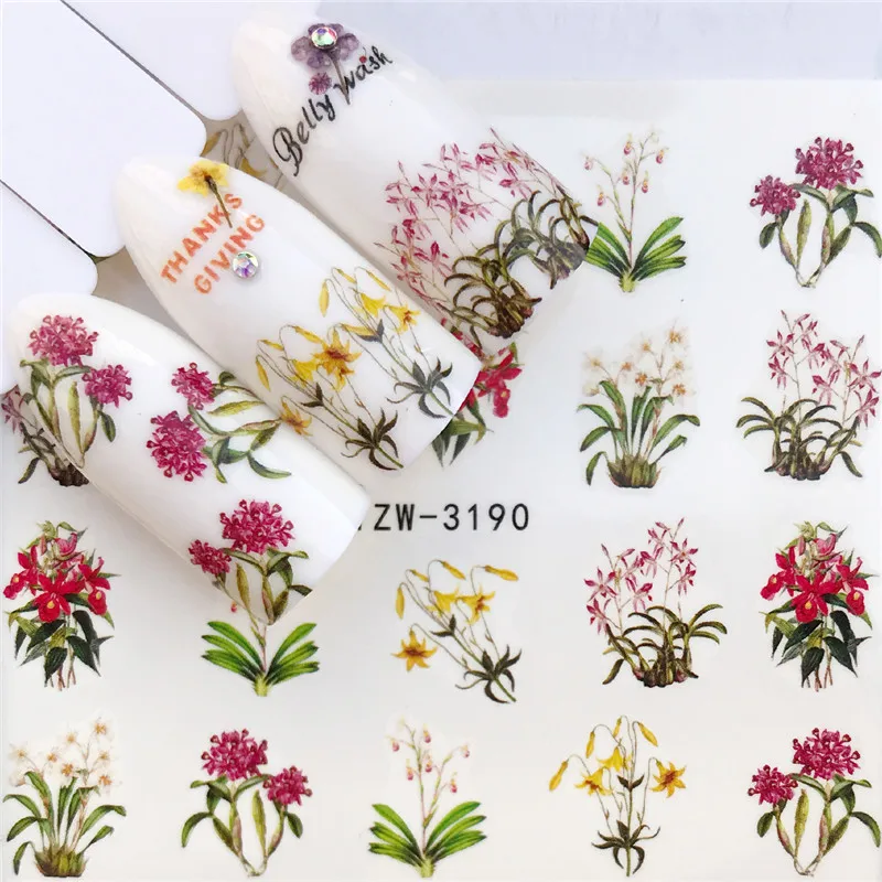 Модные наклейки для ногтей сделай сам, цветок, трава, букет, водные слайдеры, маникюрный декор, акварельные наклейки для ногтей, наклейки, аксессуары