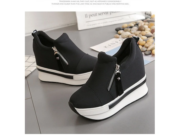 Кроссовки на высоком каблуке; Женская повседневная обувь; Сезон лето-весна; Женские слипоны; Обувь на танкетке; Женская обувь на платформе; Цвет красный, черный