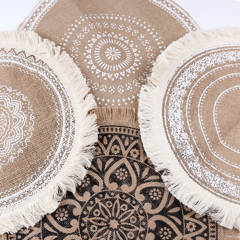 Богемный хлопковый тканый планшетофон 40 см, круглый цветочный изоляционный обеденный нескользящий нежный кухонный декор с кисточками