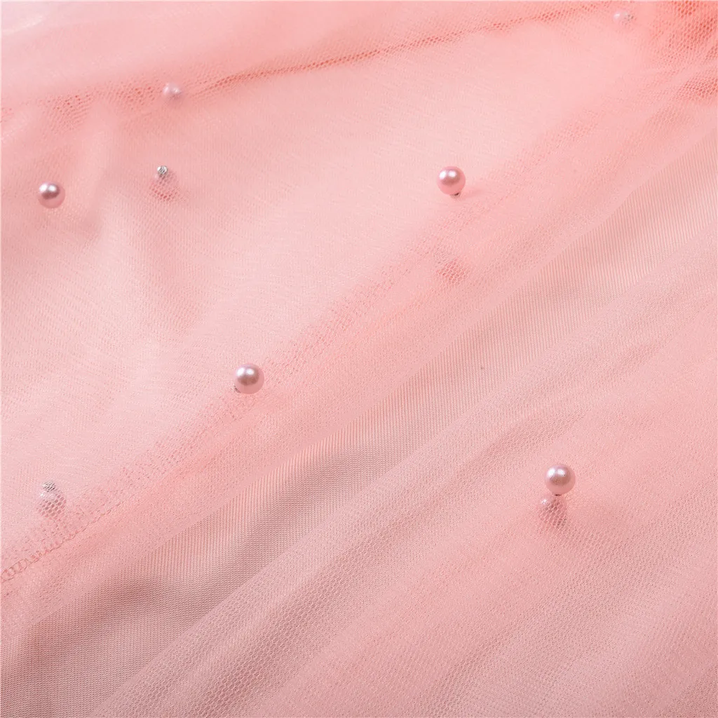 Женское Сетчатое платье с длинным рукавом и жемчугом, вечерние мини-платья трапециевидной формы