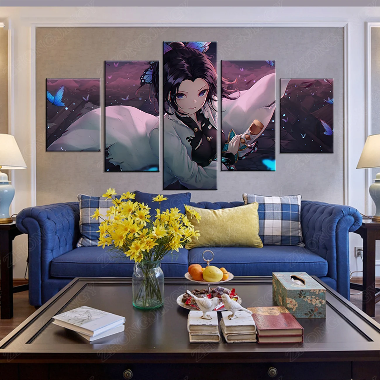 5 панелей Kochou Shinobu Kimetsu no Yaiba аниме постер художественные картины на холсте настенные картины для спальни Настенный декор в рамке