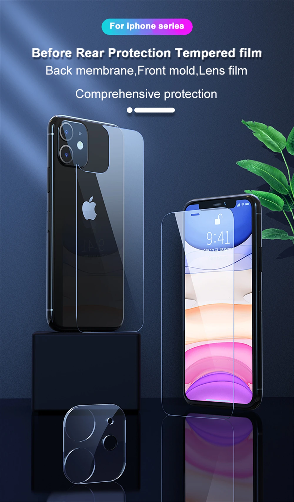 Защитная пленка 3 в 1 с полным покрытием экрана для iPhone 12 11 Pro Max 12 Mini, передняя + задняя + объектив камеры, Защитная Прозрачная пленка из закаленного стекла