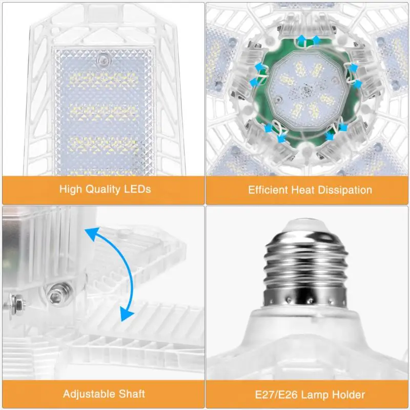 -Длительный срок службы-80 Вт Светодиодная лампа для гаража поставляется со средним цоколем E26/E27, изготовлена из безопасного премиального корпуса Abs и ПК, стабильная и долговечная при максимальной производительности, более 50000 часов, высокая экономия энергии, тот светильник вой эффект более чем на 80% энергосбережение, чем у традиционных ламп.