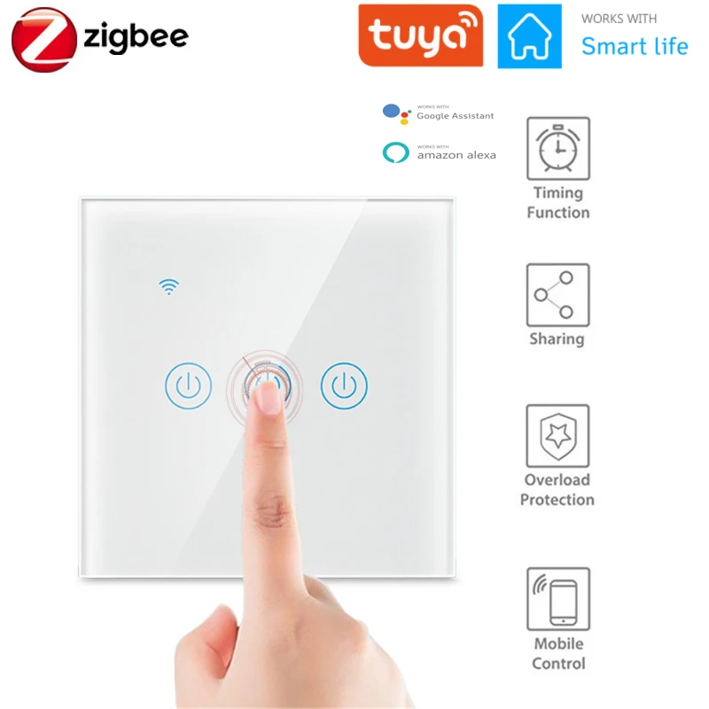 2021 Новый Tuya Zigbee роскошный настенный сенсорный выключатель Сенсор переключатель "умный дом", на возраст 1, 2, 3, 4, Gang работает с Amazon Alexa Google Home, требуется концентратор