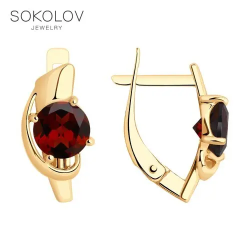 Серьги SOKOLOV из золота с гранатами, Золото, 375, Женские, Серьги 2022 тренд, Оригинальная продукция