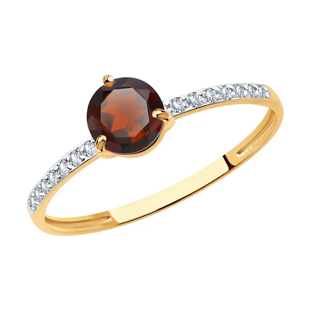 Кольцо SOKOLOV из золота с гранатом и фианитами, Золото, 585, Женское, Оригинальная продукция