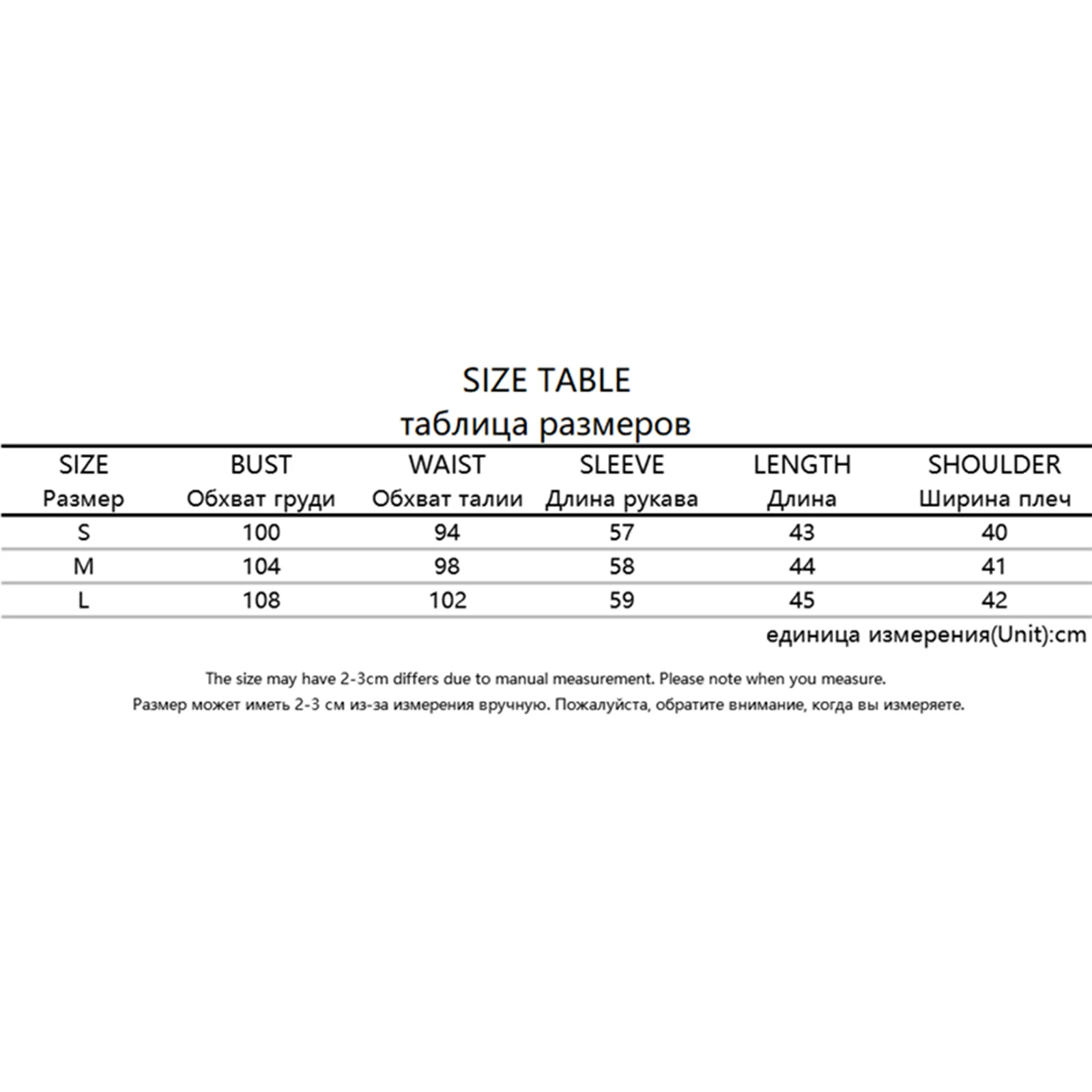 L Обхват груди: 42,52 обхват талии: 40,16 рукав: 23,23 Длина: 17,72
