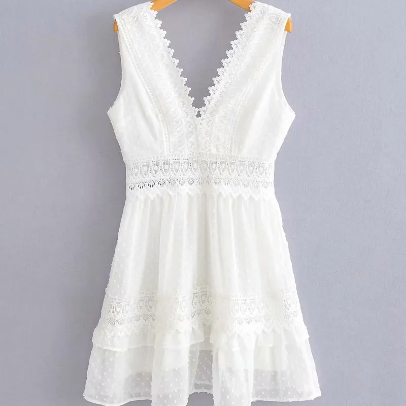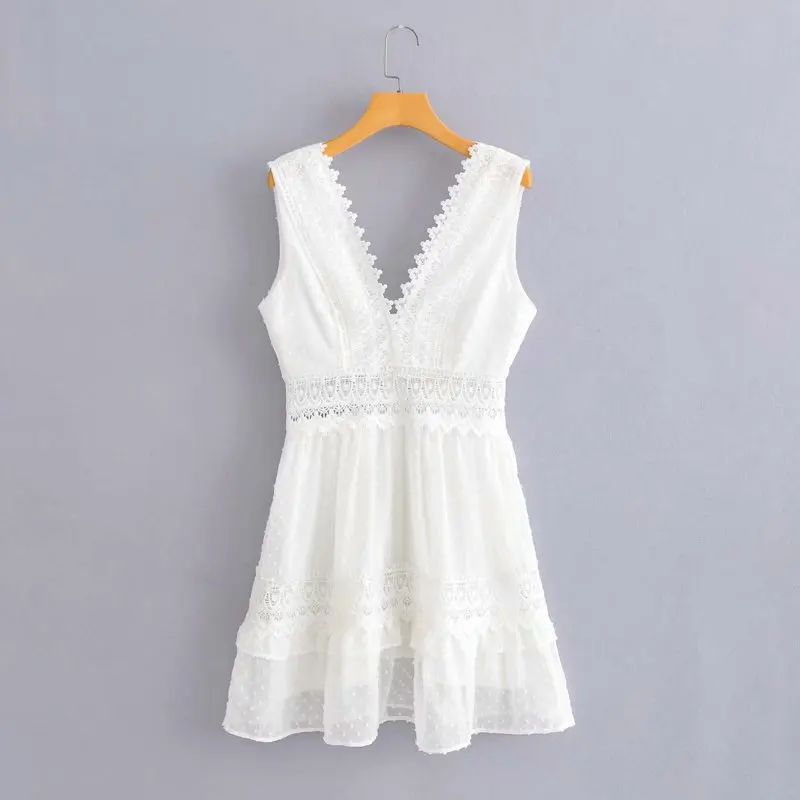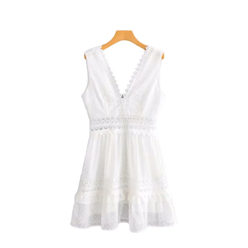Милое Платье для девочек из мягкого хлопка с V-образным вырезом, лето 2021, модное однотонное женское офисное платье мини с бахромой и высокой талией