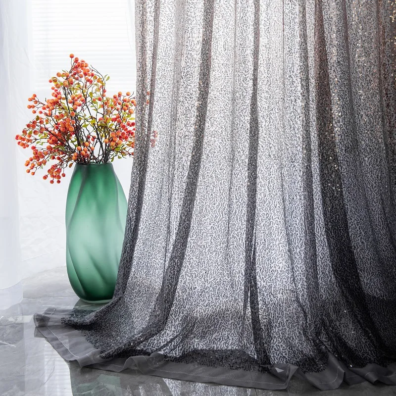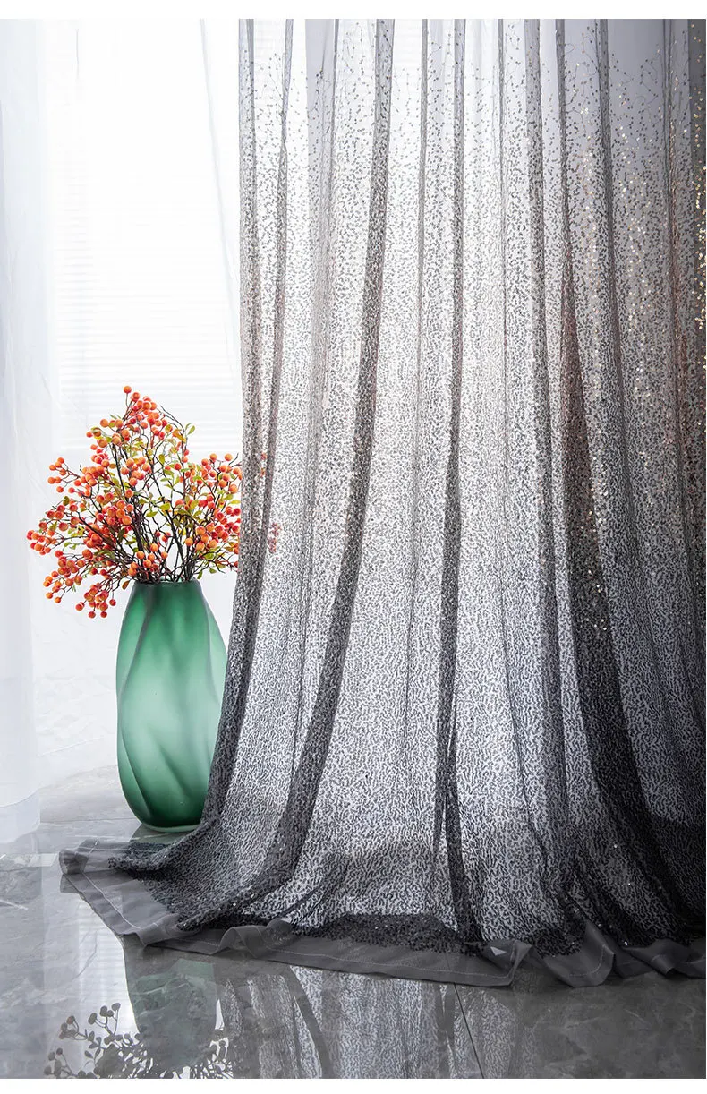 Изысканная Роскошная серая вуаль с золотыми блестками, Блестящий тюль с блестками, прозрачные оконные шторы для гостиной, занавески MY263 #4