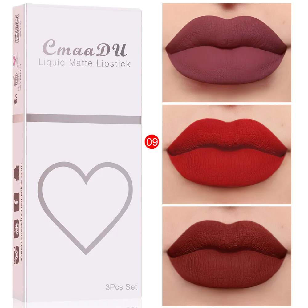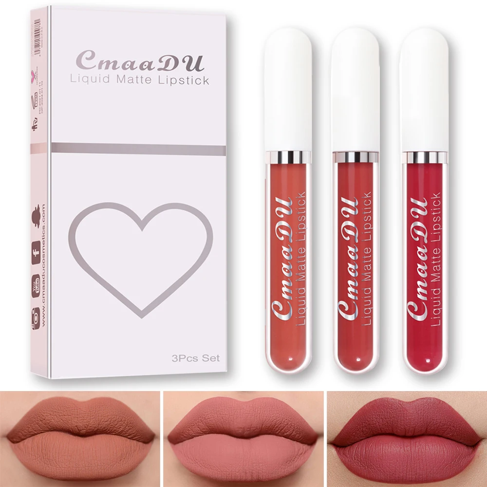 Матовый бархатный блеск для губ, 3 шт.компл., гладкий водостойкий стойкий антипригарный блеск для губ, водостойкая не сухая помада для макияжа губ