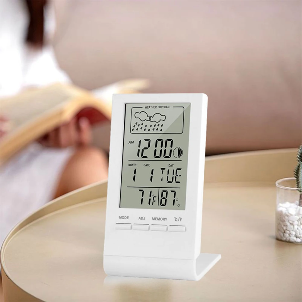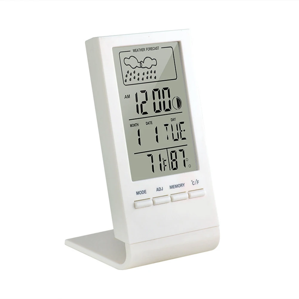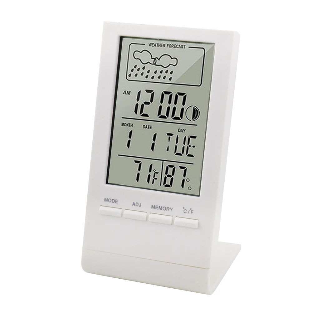 Особенности:2 в 1 термометр + гигрометр, идеальное домашнее устройство поможет вам поддерживать оптимальные условия жизни вашей семьи.Большой ЖК-дисплей показывает температуру и влажность в реальном времени с температурными единицами °/° для выбора.Широкий диапазон температур (-50 ~ 70 ° / -58 ~ 158 °) и диапазон влажности (10 ~ 99% RH) с отображением времени, недели и даты.Запись Макс/мин комнатная температура и влажность, 12/24 ч формат и функцией будильника.С 3 видами прогноза погоды: дождливая, облачная и солнечная, чтобы следить за изменением погоды.Мини-размер: он действительно маленький и светильник, компактный и удобный для переноски.Со съемным кронштейном вы можете разместить его на столе или разобрать кронштейн для карманной переноски.Идеально подходитДля гостиной, теплицы, детской комнаты, спальни, офиса, подвала,Гитарная комната, хранилище, сад, палатка для кемпинга и так далее.Характеристики:Материал: АБС-пластикЦвет изделия: белый/черный (по желанию)Дисплей: 41*61 мм ЖК-дисплейДиапазон измерения температуры: -50 ~ 70 ° / -58 ~ 158 °Температура Точность: ± 1 ° / ± 1,8 °Температура Разрешение: 0,1 °/0,2 °Диапазон измерения влажности: 10RH ~ 99% RHТочность влажности: ± 5% относительной влажностиРазрешение влажности: 1%Функция: температура и влажность в помещении, отображение максимального и минимального значения, время, будильник, неделя, дата, переключение °/°, 12/24 часовПитание: 1*1,5 V AG10 кнопочный элемент (не входит в комплект)Размер изделия: 56*50*105 мм/2,2*2,0 * 4.1inТовар Вес: 57 г/2,0 ozПосылка Размеры: 10,5*6*2,2 см/4,1*2,4 * 0.9inПосылка Вес: 67 г/2,4 ozПримечание: Если вы удалите аккумулятор, вам нужно будет сбросить время.Посылка:1 * Измеритель температуры и влажности1 * кронштейн1 * Руководство пользователя
