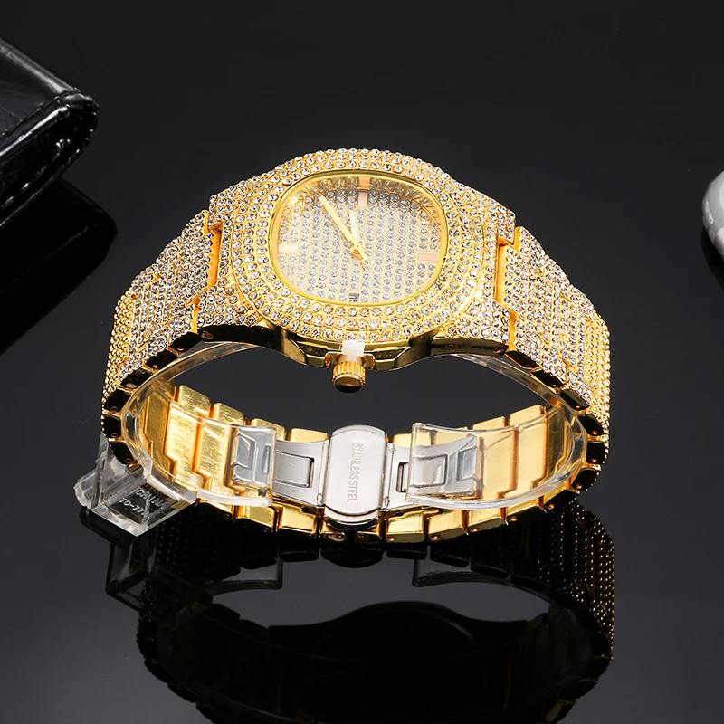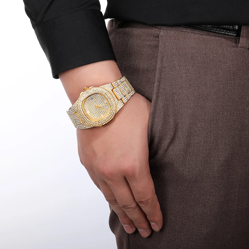 Хип-хоп, 3 цвета, мужские часы со льдом, Роскошные Кварцевые наручн...
