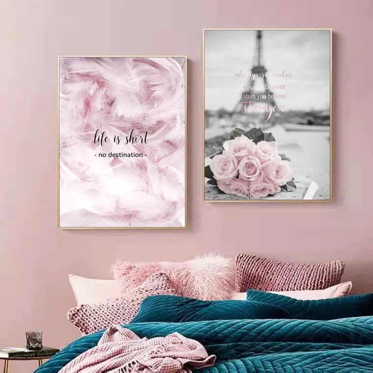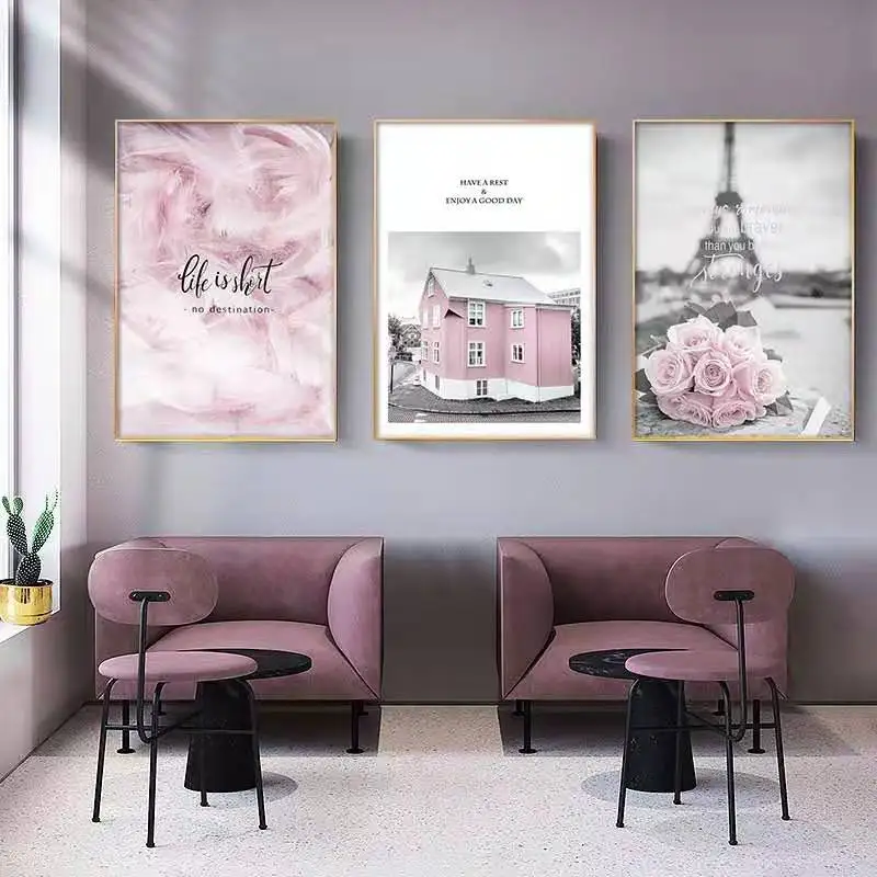 Настенная картина для спальни в скандинавском стиле, современный фон для гостиной, дивана, картина маслом розового цвета для ресторана