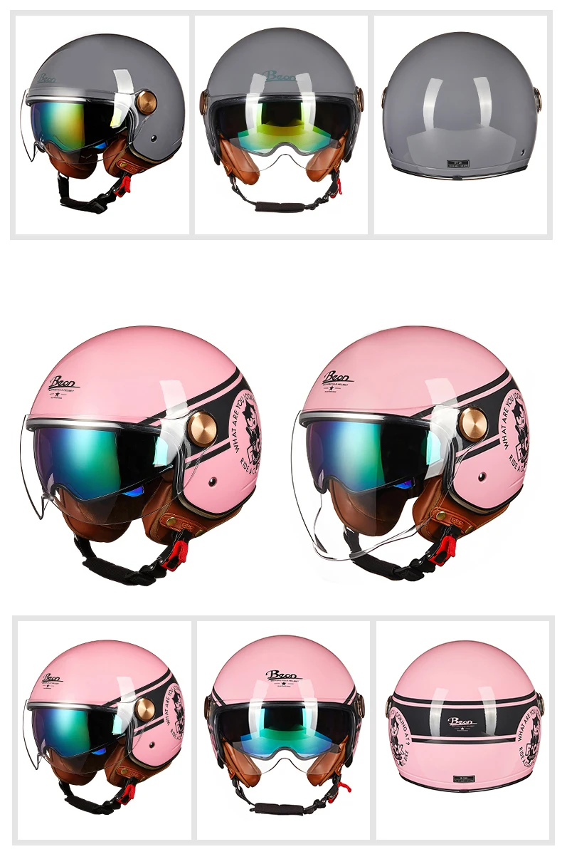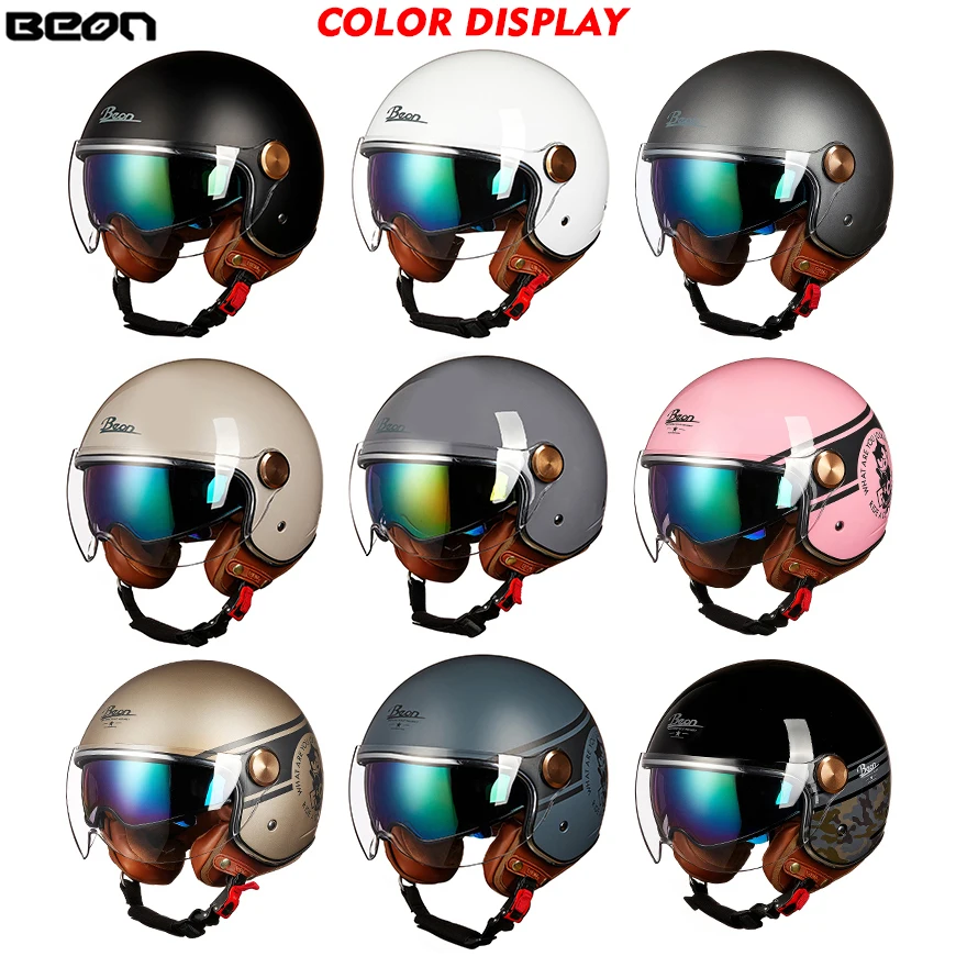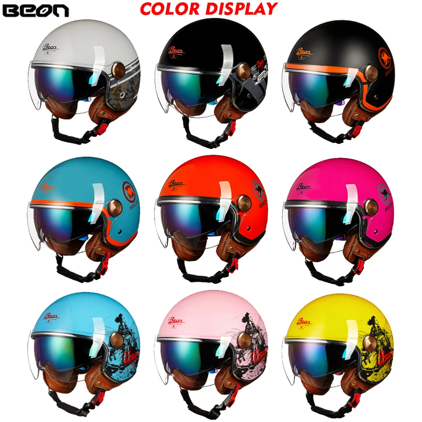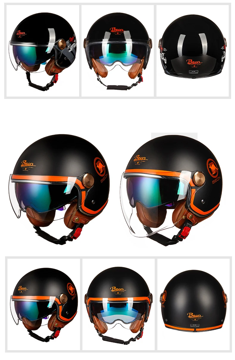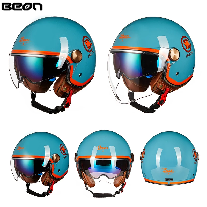 Классический мотоциклетный шлем BEON с двойными линзами 34, ретро, ...