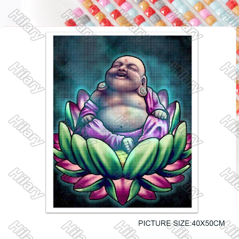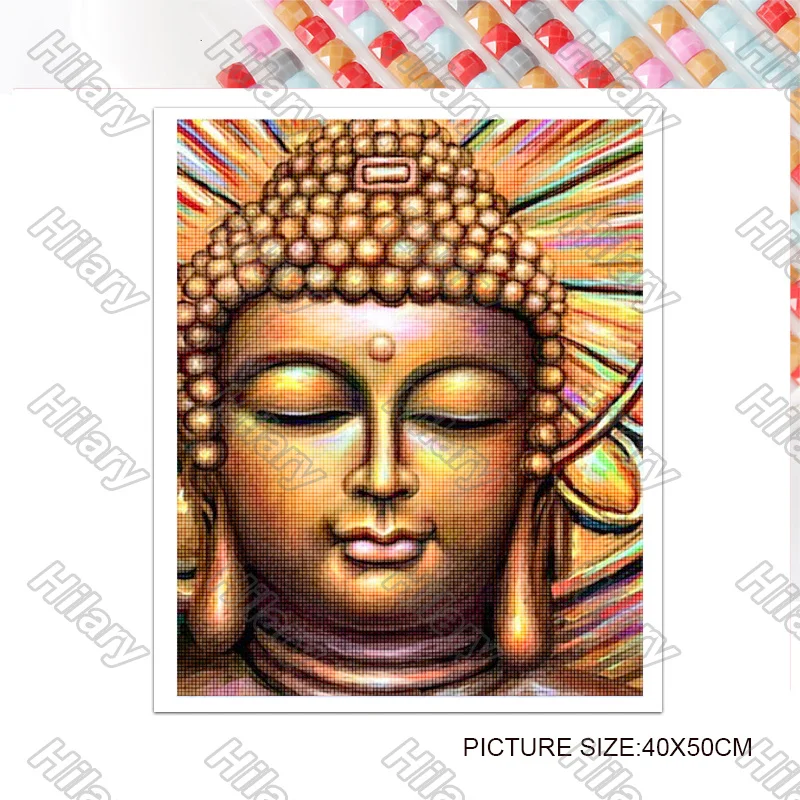 Алмазная живопись сделай сам, фигурка Будды золотого цвета, круглые алмазные украшения, настраиваемое настенное украшение, безрамный стиль